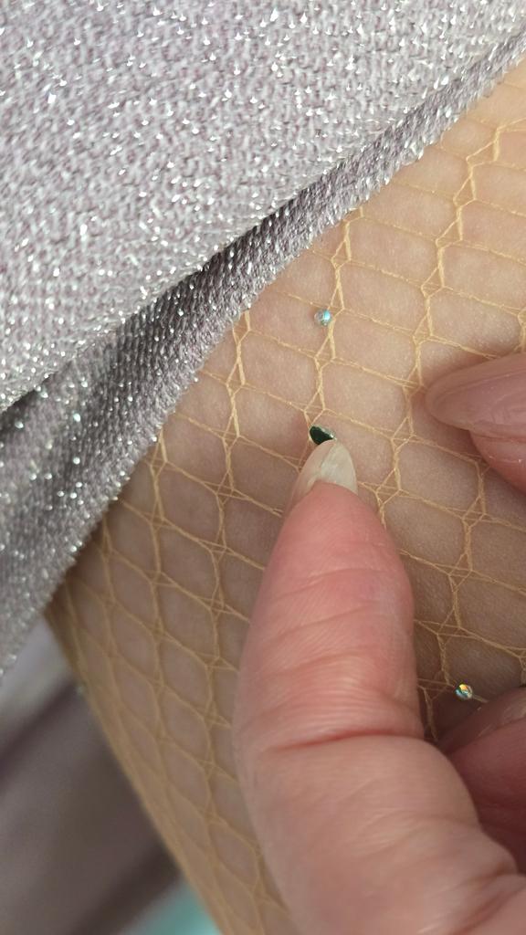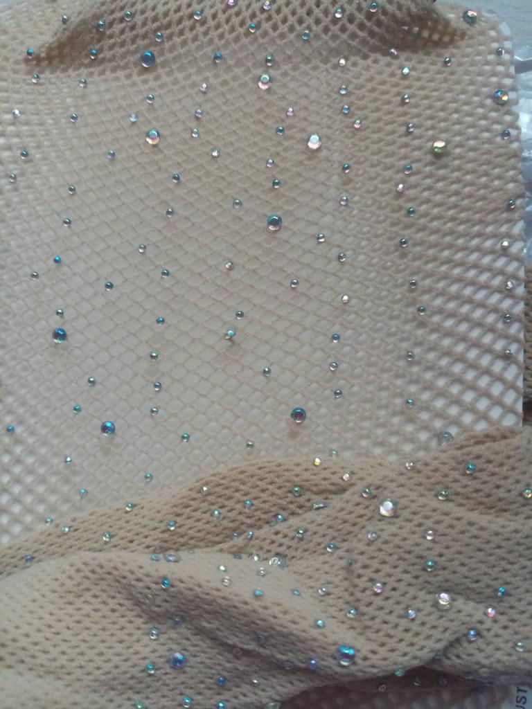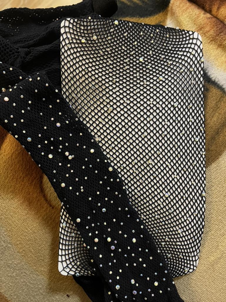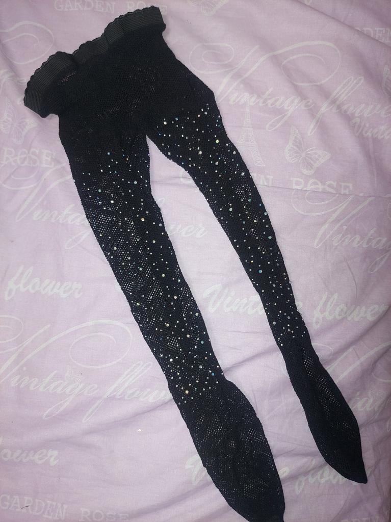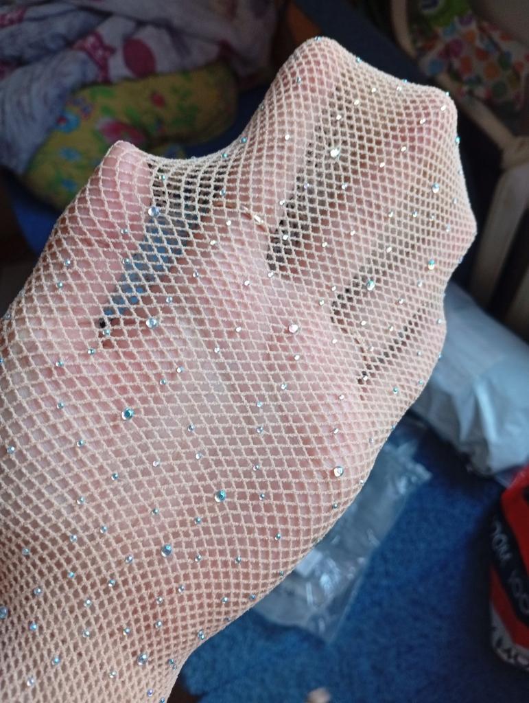 White tights with blue rhinestones, interesting