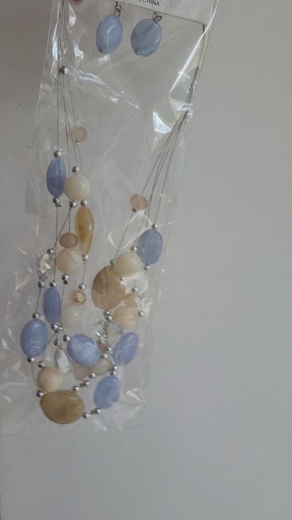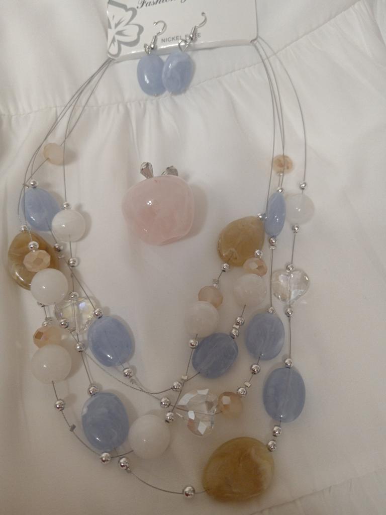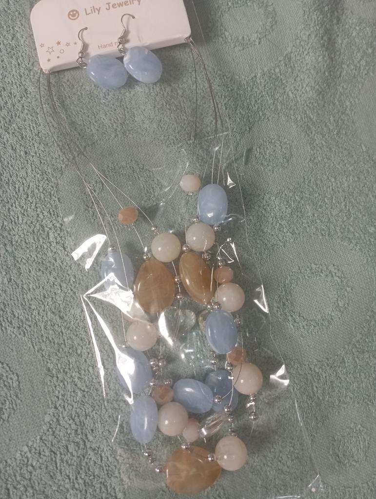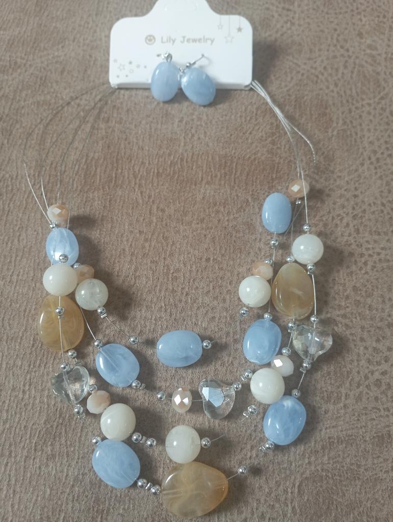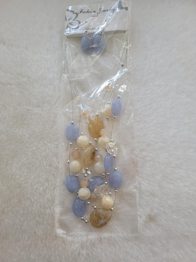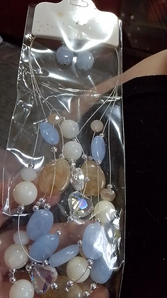 The set is beautiful, delicate. True, the blue beads are not blue, but some kind of gray. But still beautiful. Thank you.