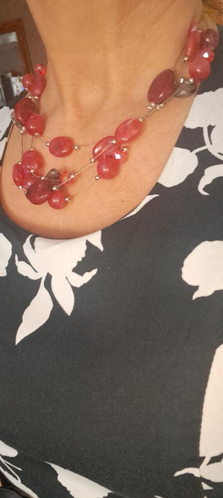 Such a wonderful necklace. Although it is made of unnatural beads, it looks very delicate and beautiful. I recommend it! I took the blue one, maybe I will order the pink one too.
