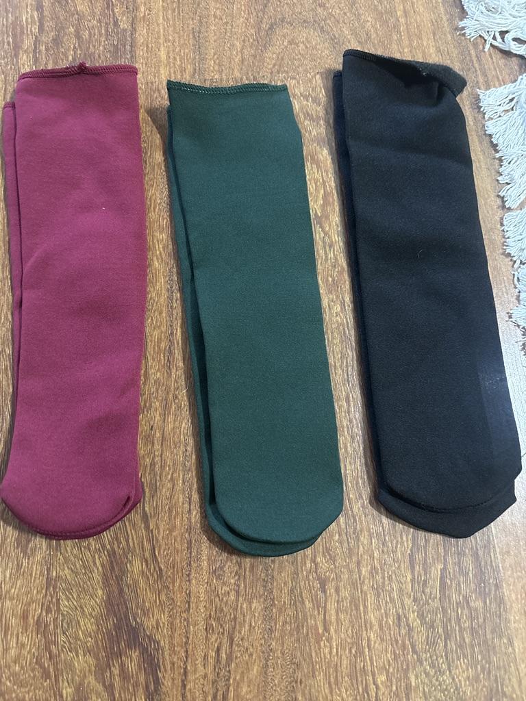 3 pairs of socks arrived. Black. There are no heels on the socks, so you can fit any size, there is no elastic. The upper part is overlocked, they do not stretch very well, so the thread will unravel. They will fit a small size. For me, size 39-40 is just right. In principle, you can stretch them on a larger foot, but then they will be a bit short at the ankle..