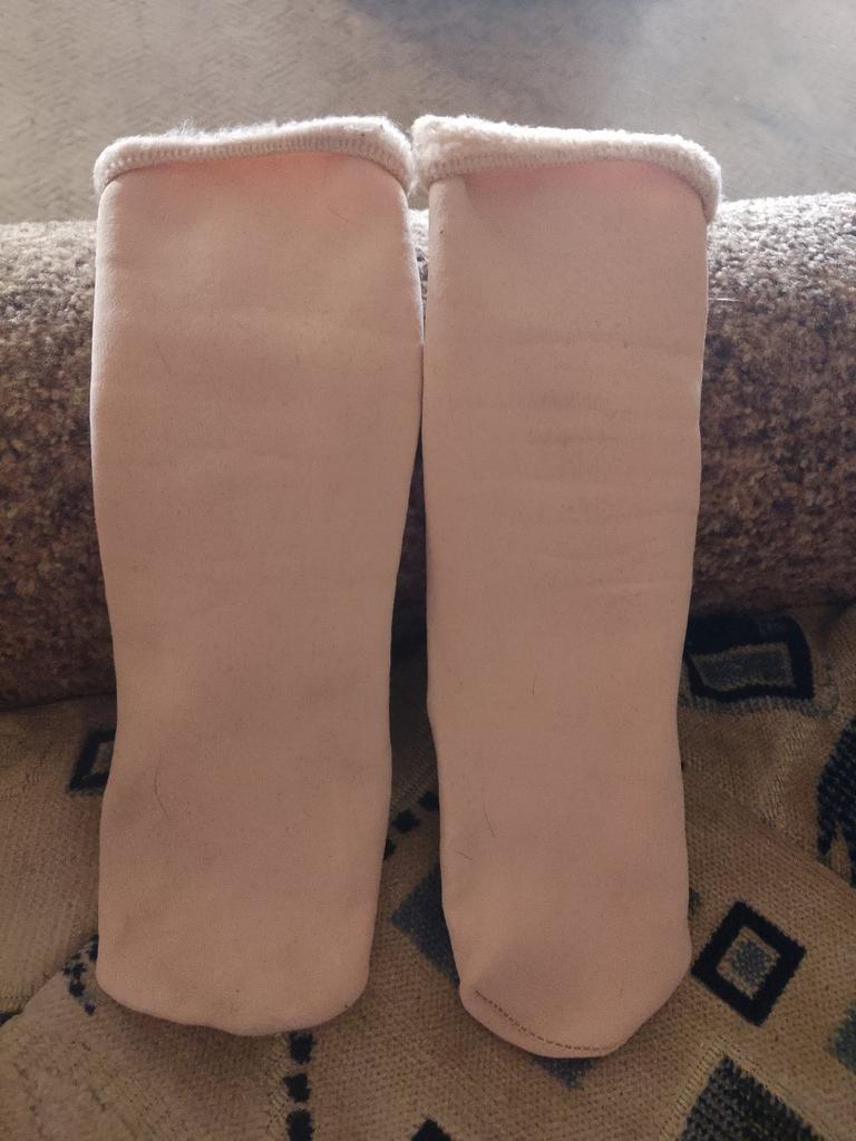 The socks are nice, insulated, with a fleece lining, beautiful colors, just to match the ordered leggings.