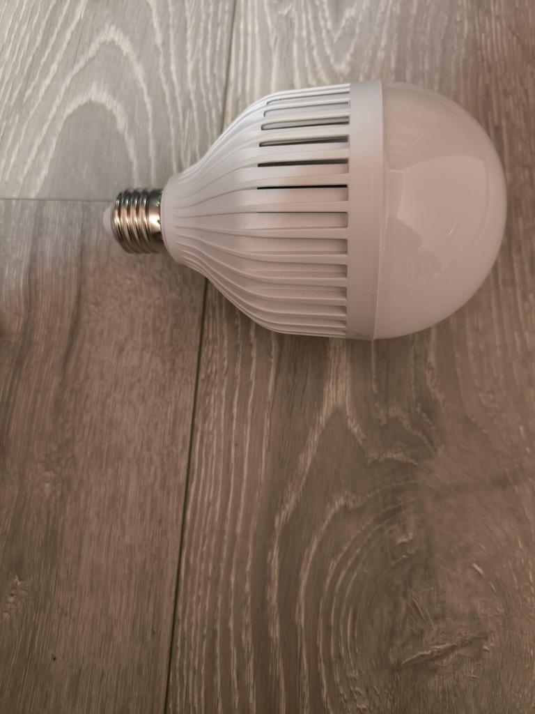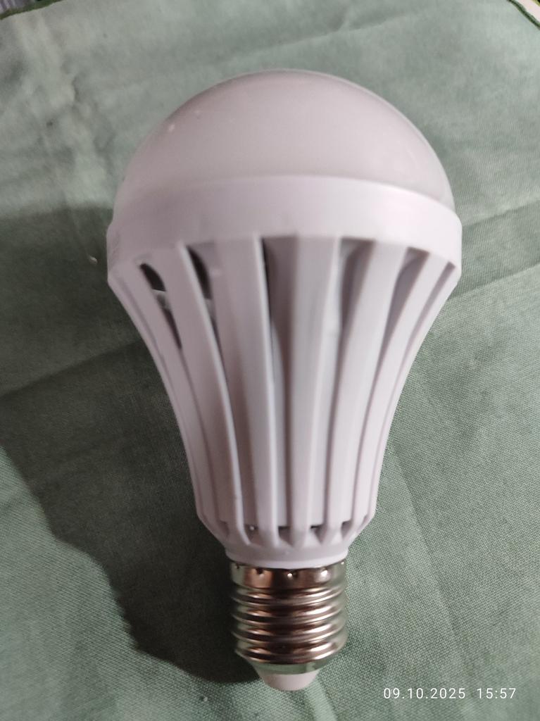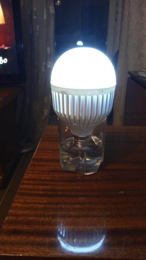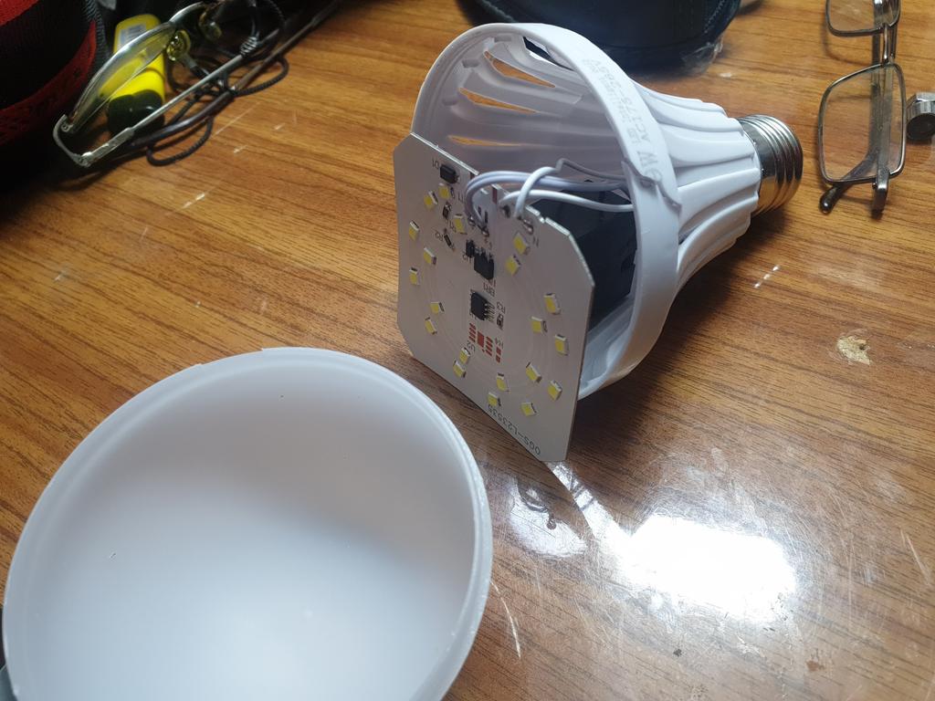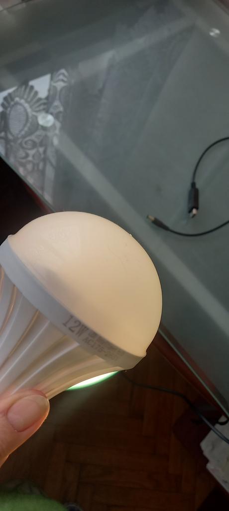 It shines weakly, but it works. The plastic is cheap and bends. I determined what the essence of the bulb is, the essence is that it has two circles of diodes. One shines from 220, and the second circle from the battery. That is, if it has 12 W, then we divide it in half. 6 W from 220, very weak.