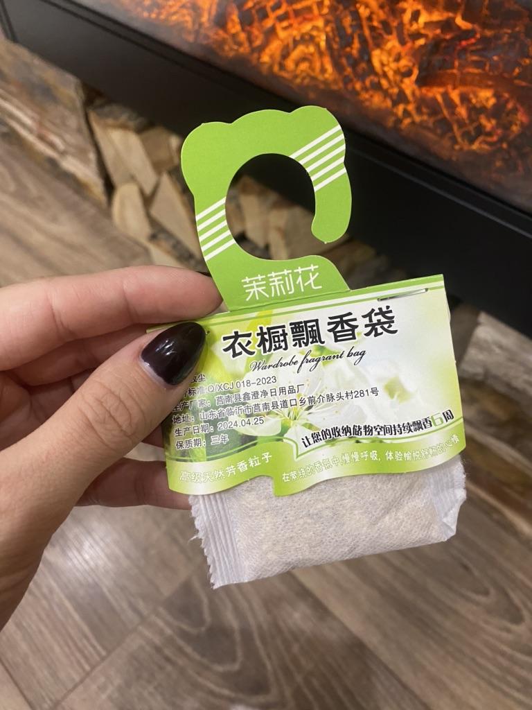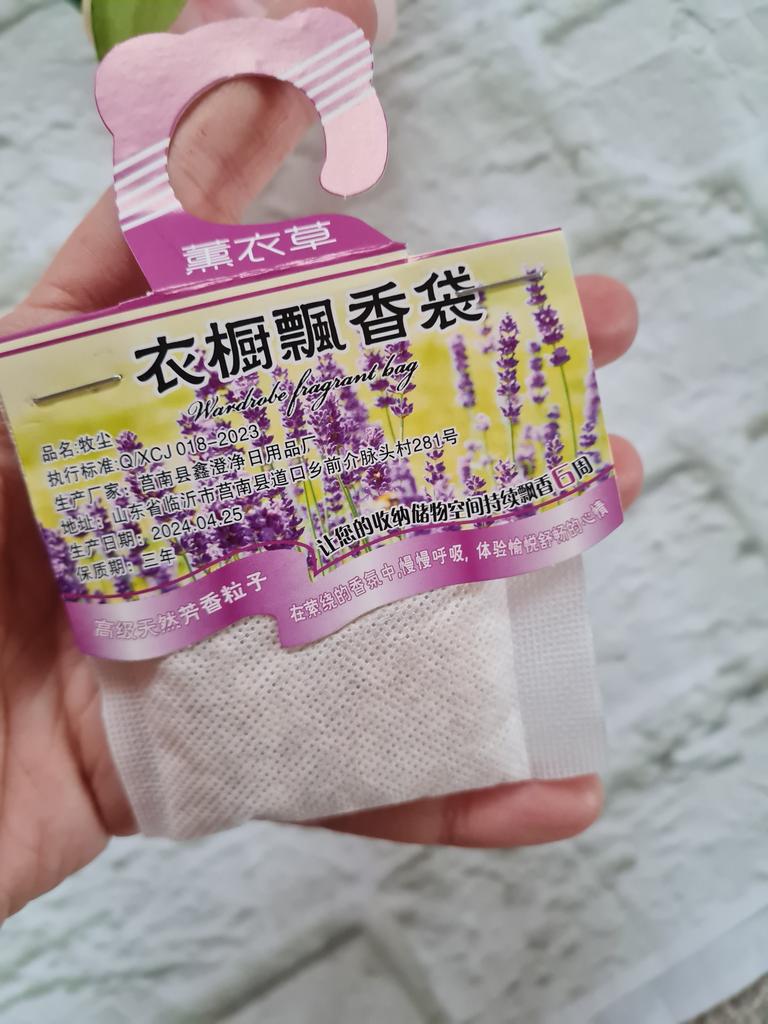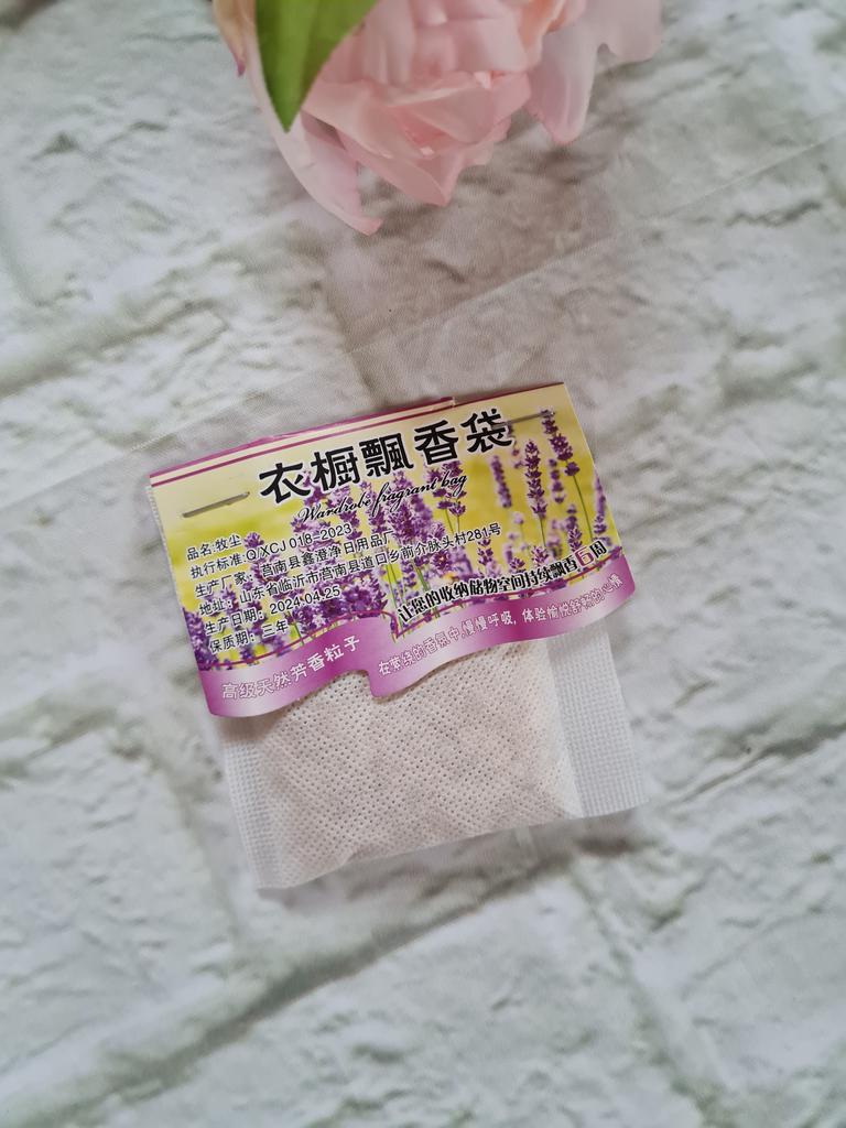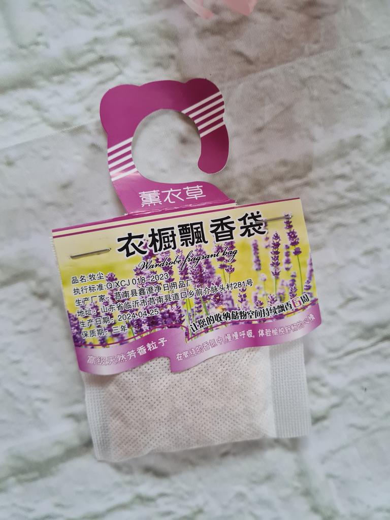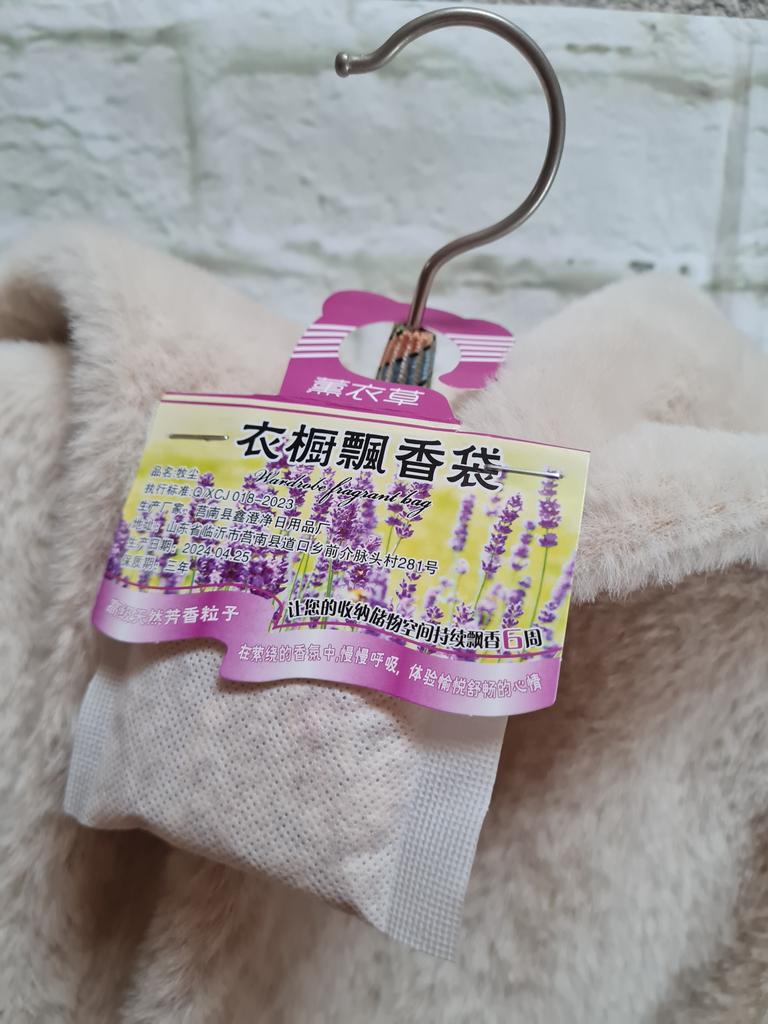 WARDROBE FRESHENER closet freshener available in 4 different fragrances, You can buy 1 piece or the set of 5 or 10 pieces. Small gauze bag with micro holes and cardboard to hang it inside the wardrobe. Arrived with tracked shipping in 16 days in a combined package. I chose the lavender scent, delicate and also anti-moth..
