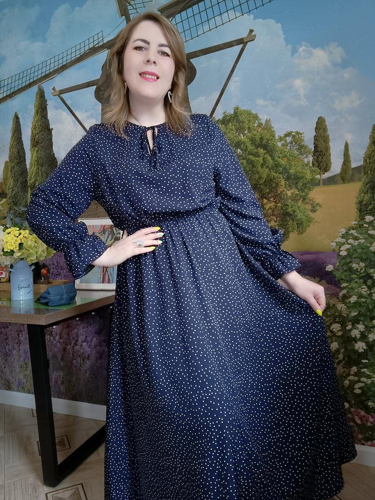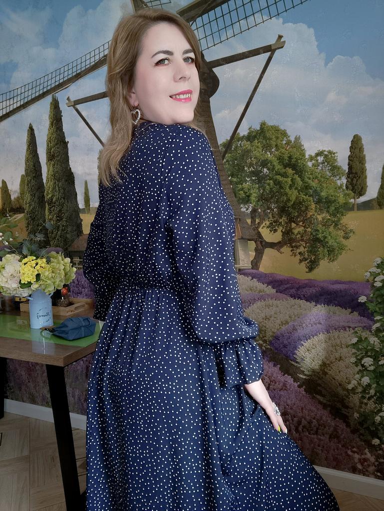 Gorgeous 🤩 polka dot dress Delivery time: 25 days in Italy. Package contents ☢️: The package includes a 100% polyester dress. The dress fabric is light and comfortable, with no stretch. Perfect for autumn or mild temperatures. 👍 The dress, with its linear lines, is truly elegant and stylish. You can make it unique with a belt, a scarf, or a jacket. The product is available in several colors, and the color is exactly as shown. Size XL. The dress is only available in large sizes, but thanks to a belt, it fits me perfectly. My measurements are 75-69-93 cm. The dress is very comfortable. ! I'm very happy! 🔝👍Everything matches the description. The dress is AMAZING!!! ☀️Summary ✳️: dress I recommend it!!!! 5 stars 🌟 🌟 🌟 🌟 🌟! Thank you Joom and the seller! 👍☀️