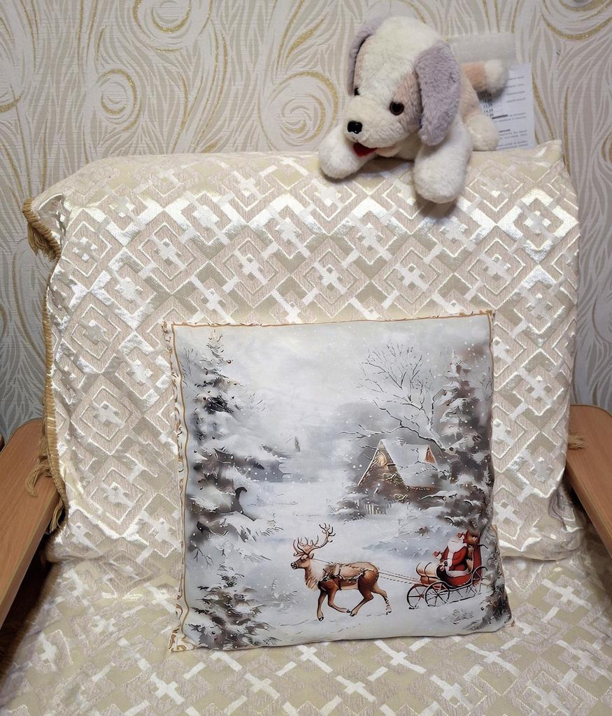 Arrived after the New Year, carefully packaged, look very good, the pattern is wonderful, brings coziness and warmth to the home, not linen, the material is pleasant to the touch, closes with a zipper, but it is not hemmed, and therefore during washing, the material near the zipper will fray.