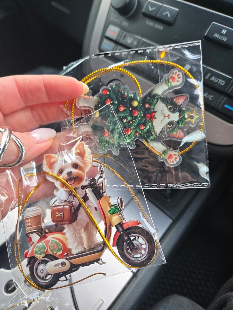 Christmas Decoration Puppy Riding Motorcycle Acrylic Pendant Xmas Tree Hanging Ornament for Holiday Home Car