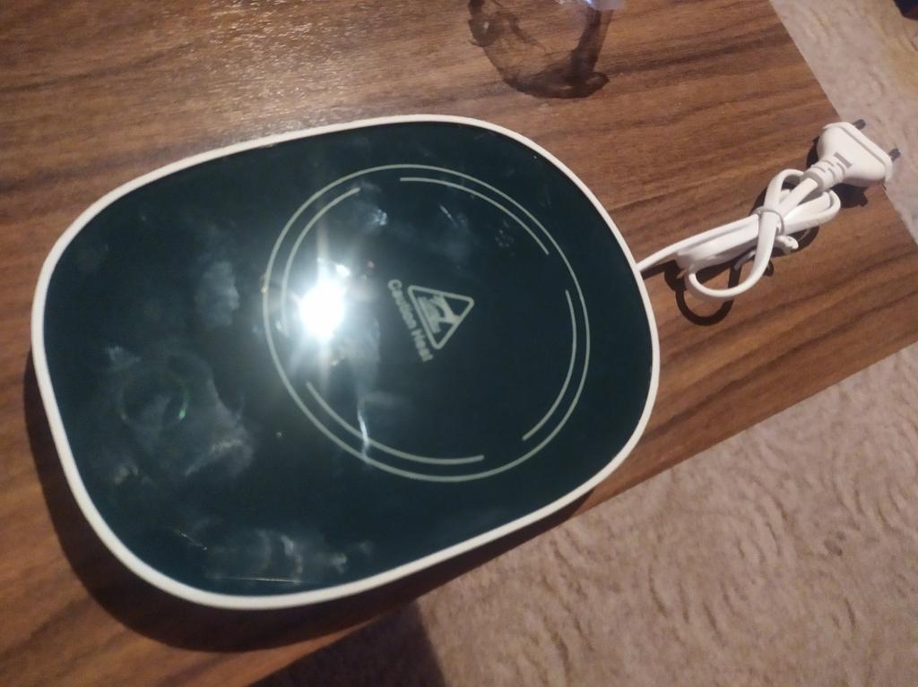 A wonderful thing. Heats up strongly and quickly. I burned my hand a little because, stupidly, I thought "Well, it's a Chinese hot water bottle, how hot can it be, pfft!" Well, it can. It doesn't heat the ceramic cup so much, but I put a folded handkerchief under the plastic container because I'm concerned that the plastic might overheat and deform if I put the container with food directly on the hot water bottle. On the other hand, today I ate hot homemade food at work for the first time. Other advantages - the power button is at the bottom, it activates under the weight of the placed item. When a cup or tray is placed on it, the warmer heats up. When removed, the warmer turns off. It also cools down quite quickly.. Of the minuses - it smells quite strongly of plastic and moreover I'm not sure that this heater will last long and won't try to take the socket with it when it decides that it's time to die. But we'll cross that bridge when we come to it. For now, I'm satisfied with everything.