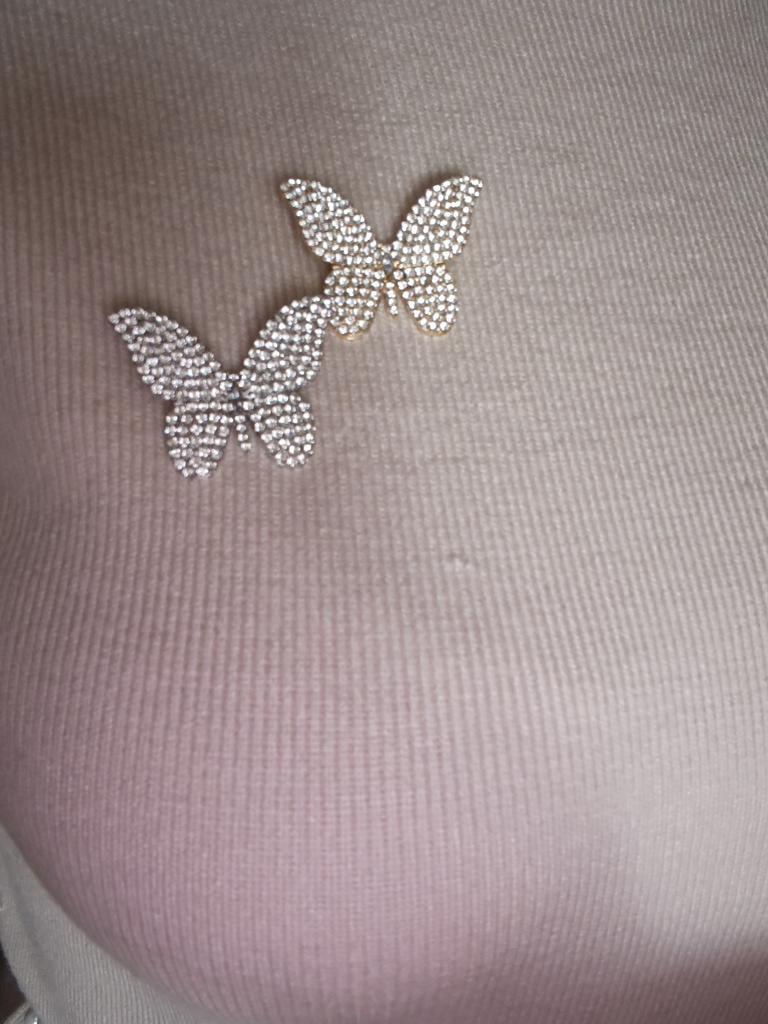 Ordered two brooches (silver and gold). Pinned them to a knitted dress. The pair of butterflies looks beautiful.