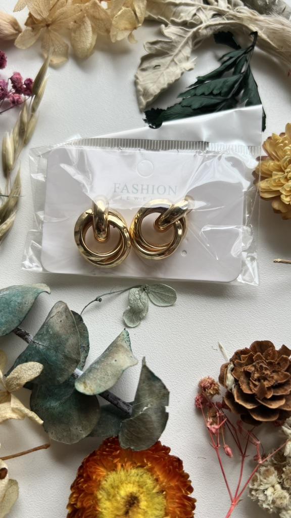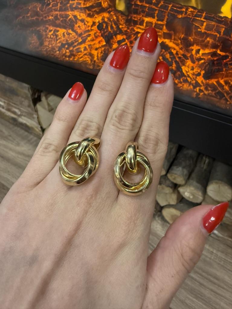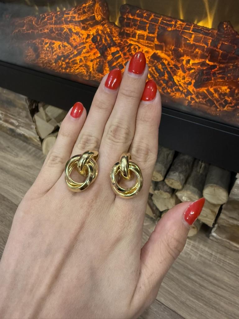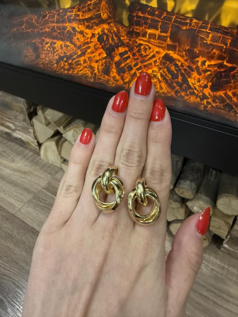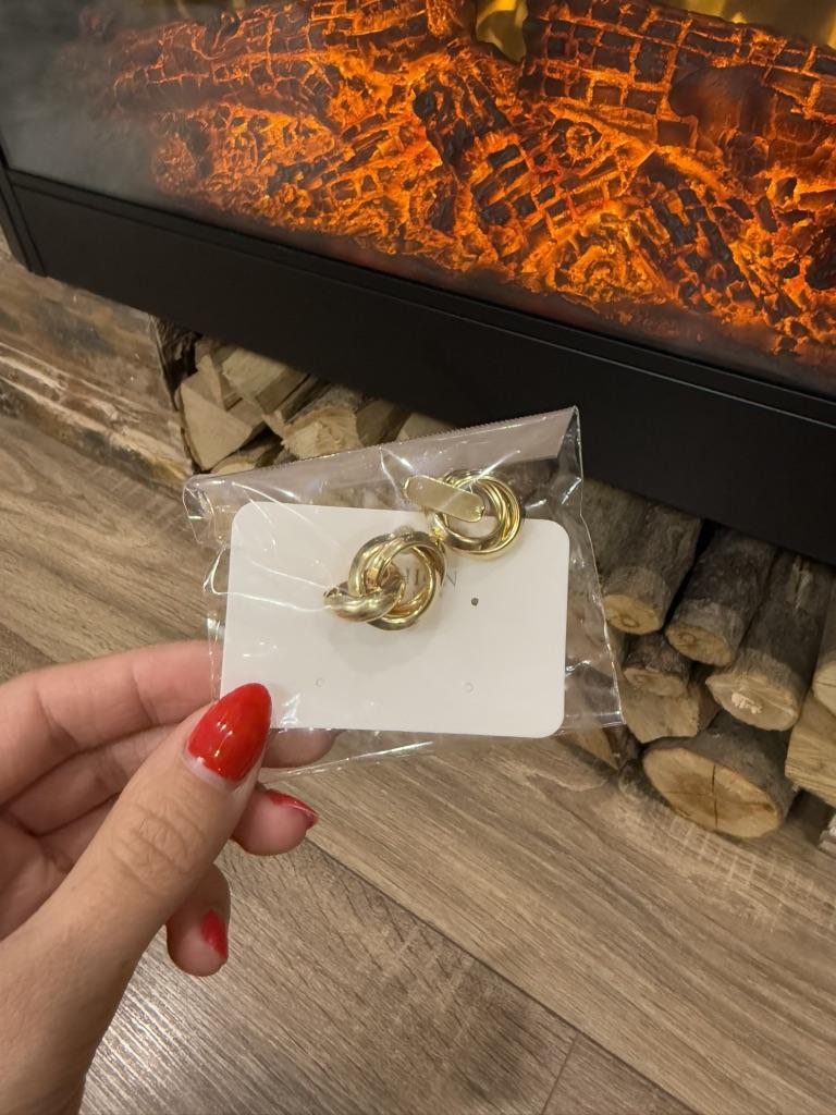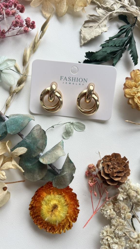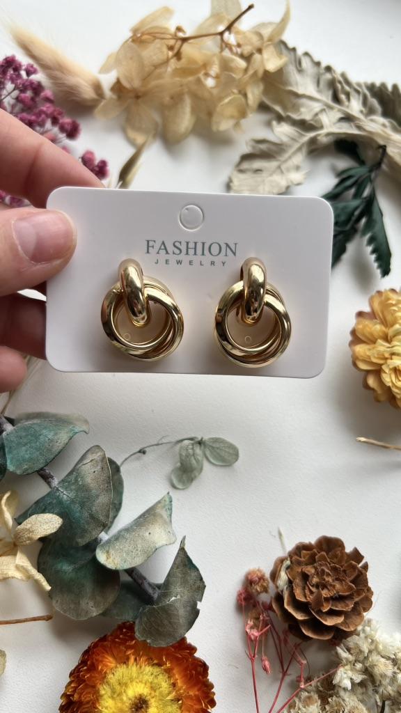EARRINGS Double intertwined hoop ear studs. They are perfect for an elegant style. They arrived in Italy with tracked shipping in 15 days. Super fast shipping. Well wrapped in a sheet of bubble wrap they arrived intact. Packaging: They come in a plastic bag with a cardboard support. Excellent quality-price ratio. The metal color is gold zinc alloy but silver is also available. Back closure: metal. No glue stains, no scratches and no defects. The purchase is recommendedπππππ