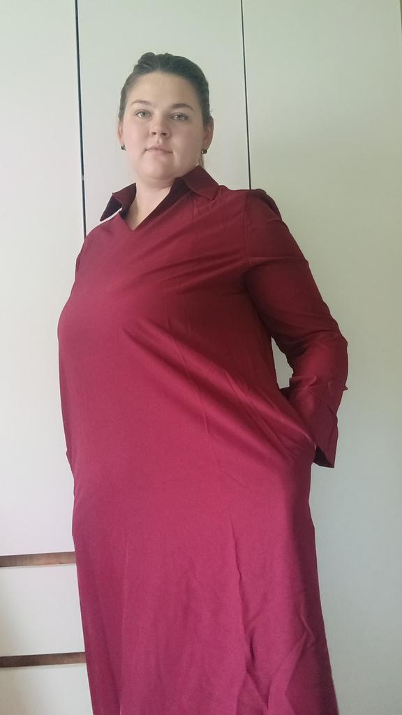 I was looking for a comfortable, wintry dress that would be both beautiful and comfortable ā and this is exactly what I wanted. This dress is simply perfect for the season! The fabric is thick enough, soft and pleasant on the body, and feels high-quality. The cut is loose but still very flattering, especially thanks to the high waist and the V-neck that adds an elegant touch.. The pockets ā a serious showstopper. Finally a dress that is both beautiful and practical! I use them a lot, even when just standing and wanting to feel comfortable. The length is ideal (I am 1.65m tall) ā reaches to the ankle, exactly what I was looking for in a dress for cooler days. I loved that you can wear it every day with sneakers or boots, but also dress it up with a belt and accessories for an evening out. The colors in the photo are true to the product, and the fabric hardly wrinkles at all.. In short ā a super recommended dress for autumn and winter. Already thinking of ordering another color!