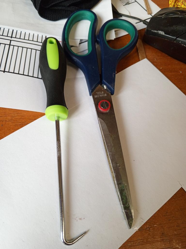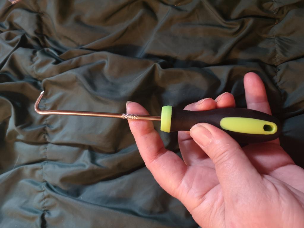 Ordinary bent wire. Hook for cleaning cracks and joints.