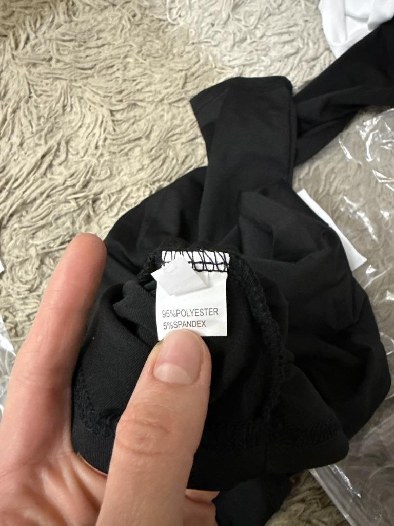 The product description states the composition - 95% cotton, 5% spandex. The product arrived with a different composition - 95% polyester, 5% spandex. The fabric quality is terrible