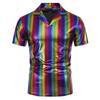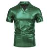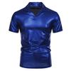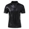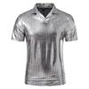 Summer Men's Short Sleeve Polo Shirt Shiny Metallic Streetwear Lapel T-shirts Men Gold Stage Costume Disco Party NightClub Tops
