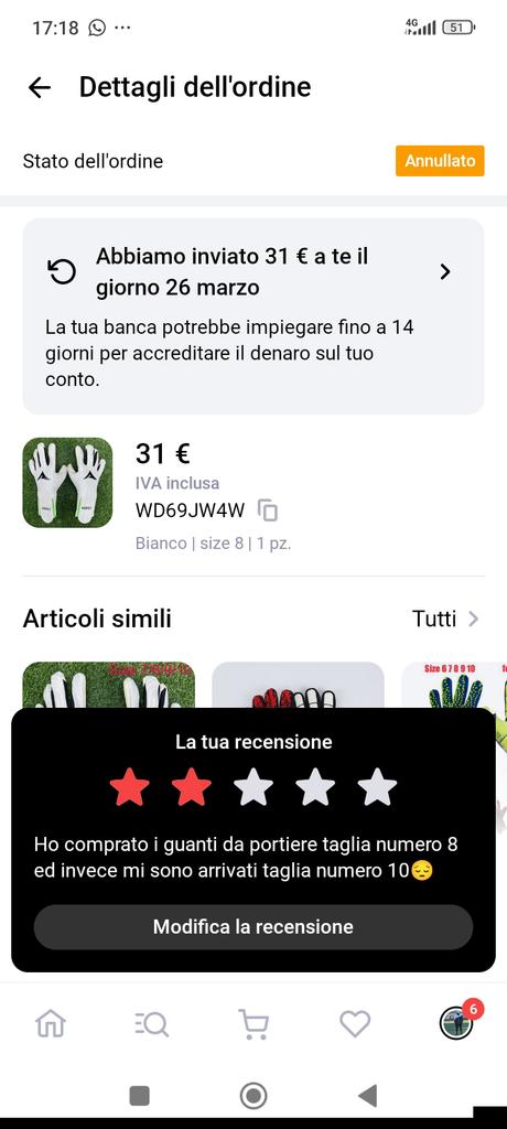 I bought goalkeeper gloves size number 8, but instead I received size number 10😔