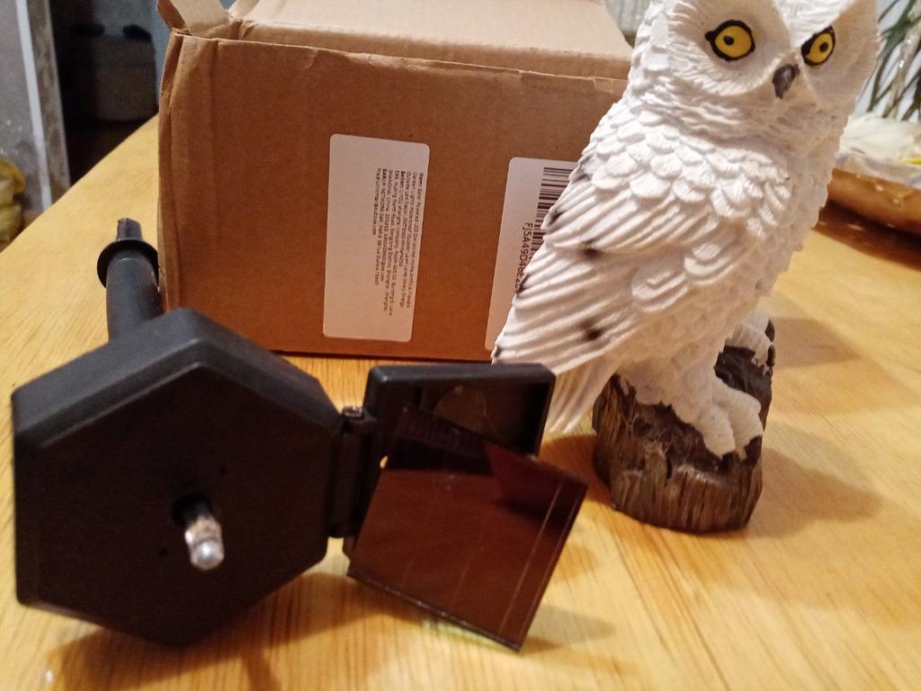Arrived broken. Return the money. The owl is for the trash. The fastener between the stand and the owl is broken. And it's completely missing. Even the broken piece isn't there. And the battery that fell out of the holder where it is held. The order arrived defective. It's a shame.