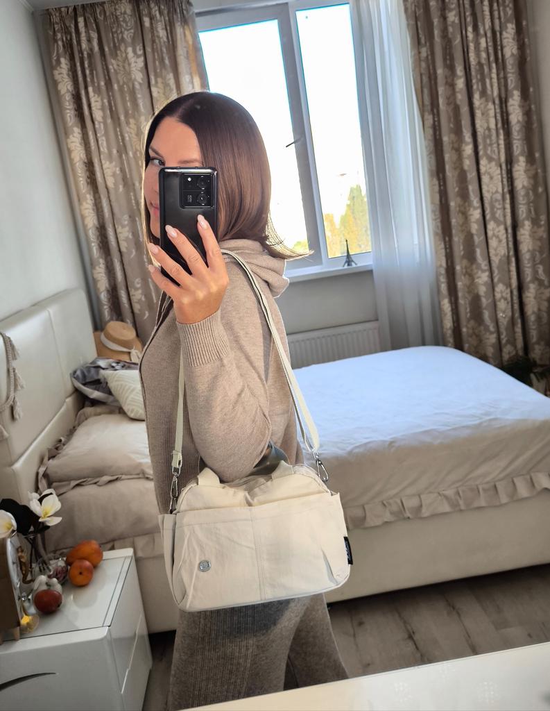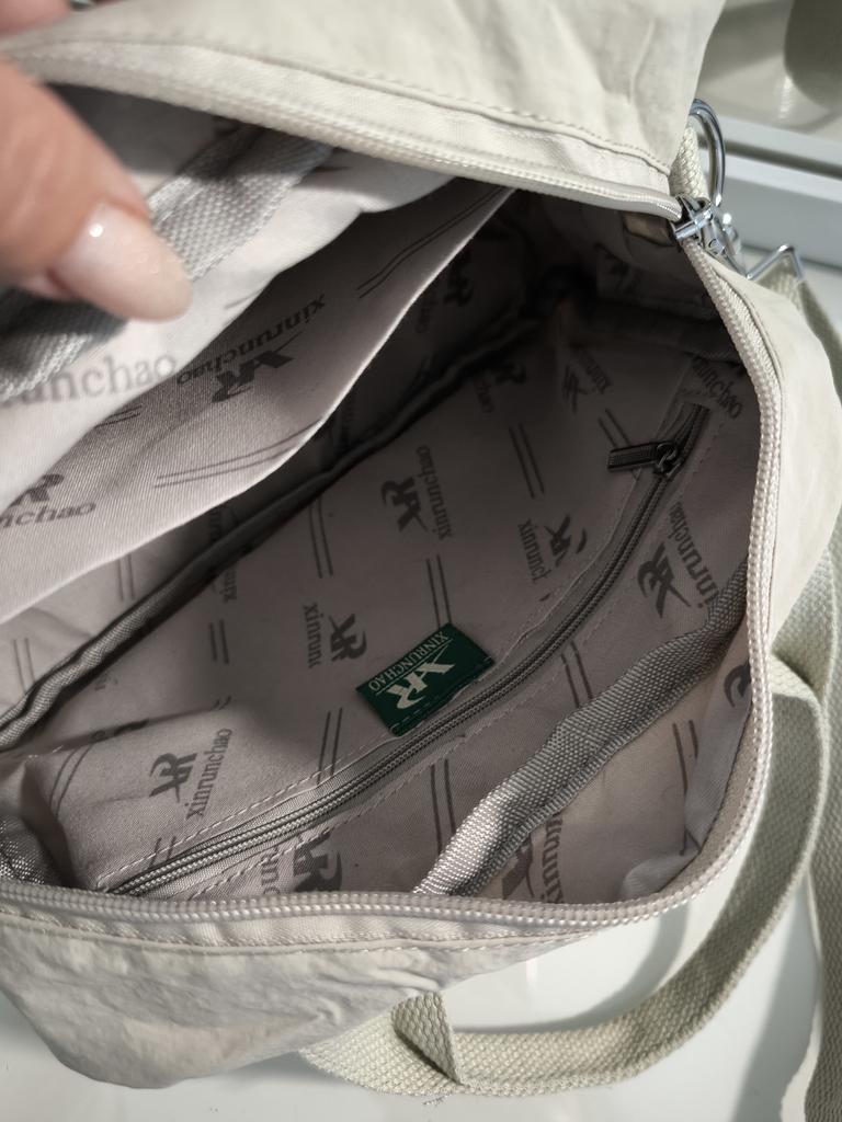 CROSSBODY BAG small shoulder bag equipped with a removable and adjustable shoulder strap, the shoulder strap's snap hooks are made of metal. The bag has 2 internal pockets, one with a zipper and one without. On the outside, 2 pockets that can be closed with a zipper, and 2 small pockets without a zipper.. Good capacity of the bag. It can be worn on the shoulder or by hand Available in various colors. I chose the khaki color Material: fabric of good thickness and in my opinion water-repellent, the bag is lined. The hinges are fully functional Surely we can wash it in the washing machine 😉 The seams are accurate, no bad smell, no defects. Arrived in Italy in 19 days with tracked shipping. Packaging: cellophane wrap. Recommended purchase 👌