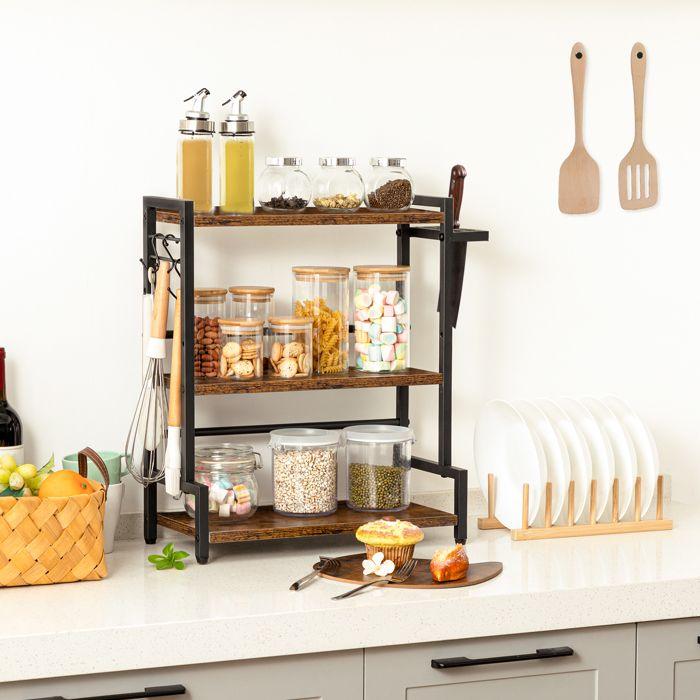 Étagère à épices - hoobro - 3 niveaux - marron rustique - métal - style industriel