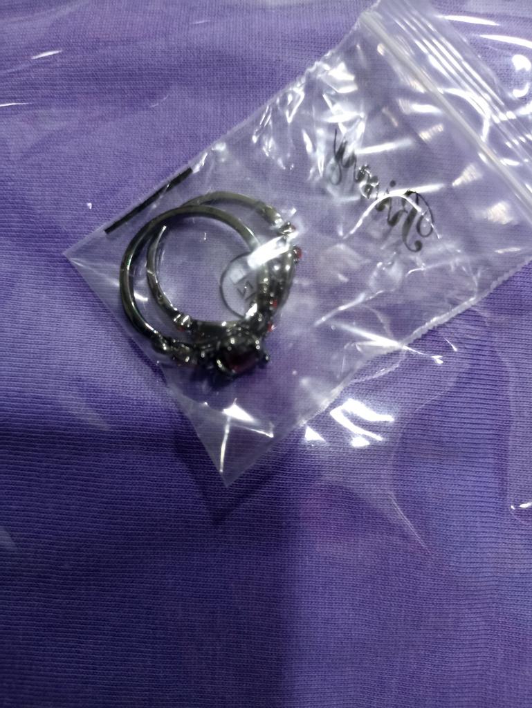 Sanjie European-American Retro Ruby and Gun Black Rose Branch Ring Pair