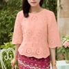 ZANZEA Women Casual Round Neck 3/4 Sleeve Loose Patchwork Crochet Blouse