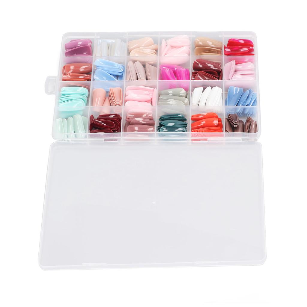 576pcs Press On Coffin Fake Nails Glossy Full Cover Color Mixing Different Size Ballerina False Nails