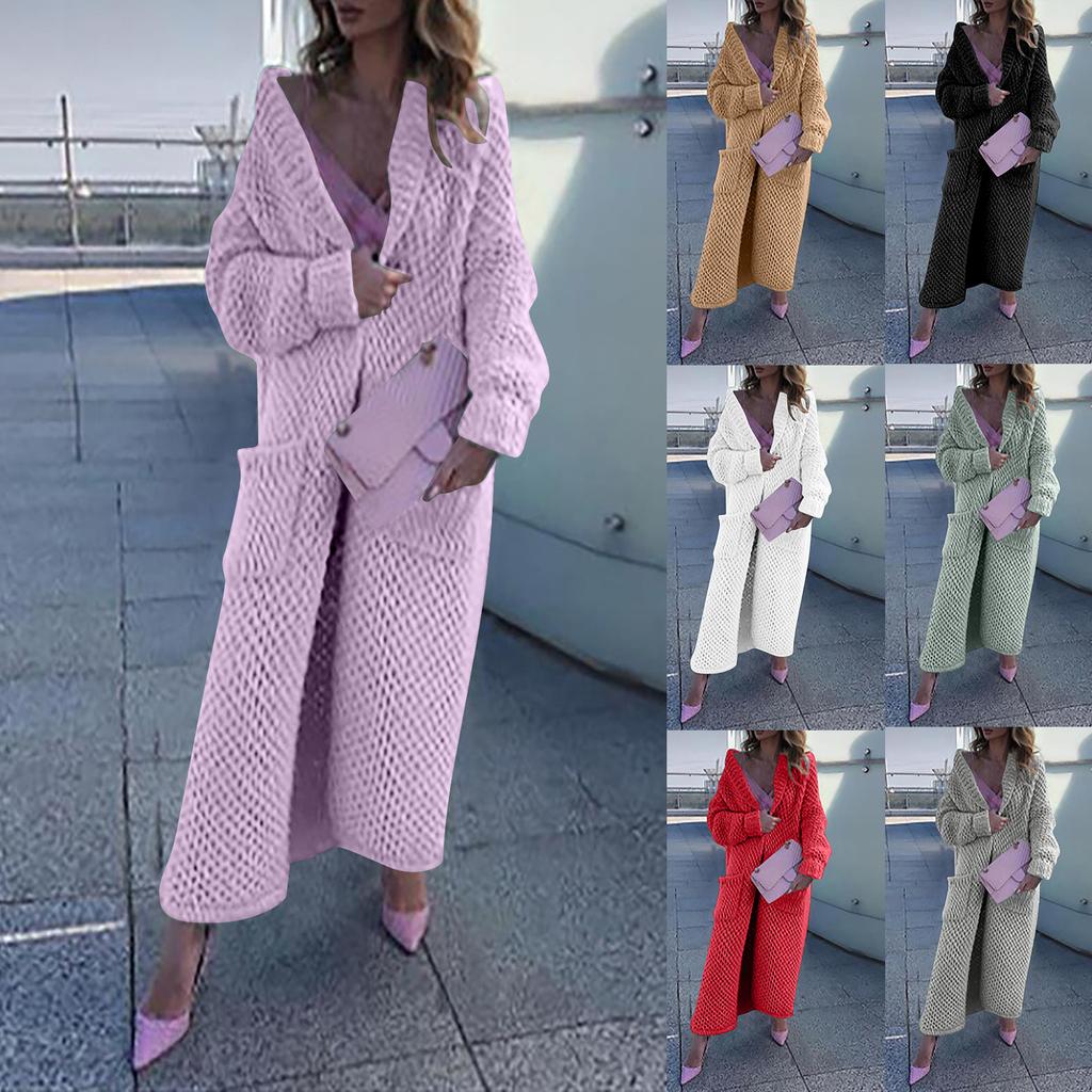 Women's Winter Long Lapel Warm Sweater Loose Knit Cardigan Jacket Solid Color Thick Fashion Sweater Coat
