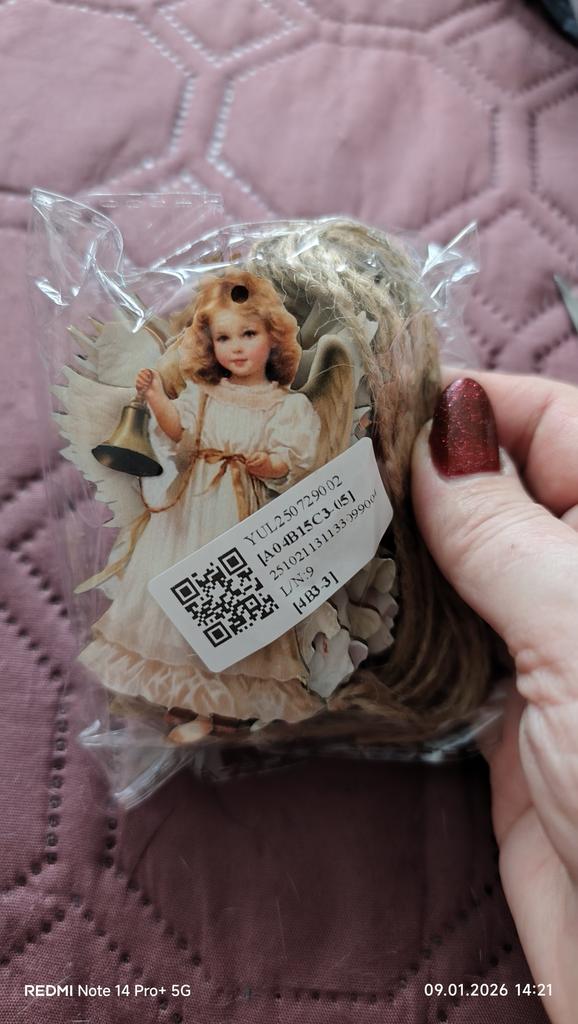 Since the package took 91 days to arrive, I don't feel like reviewing it. I wanted to give them to my friends for Christmas. Now I have to wait a year, the impression is not very good. The little angels are painted well, clearly, but the ties for them are simple linen rope. If they were tied with gold or silver thread, it would be more beautiful and delicate. In the photo, they are even brighter than in real life.