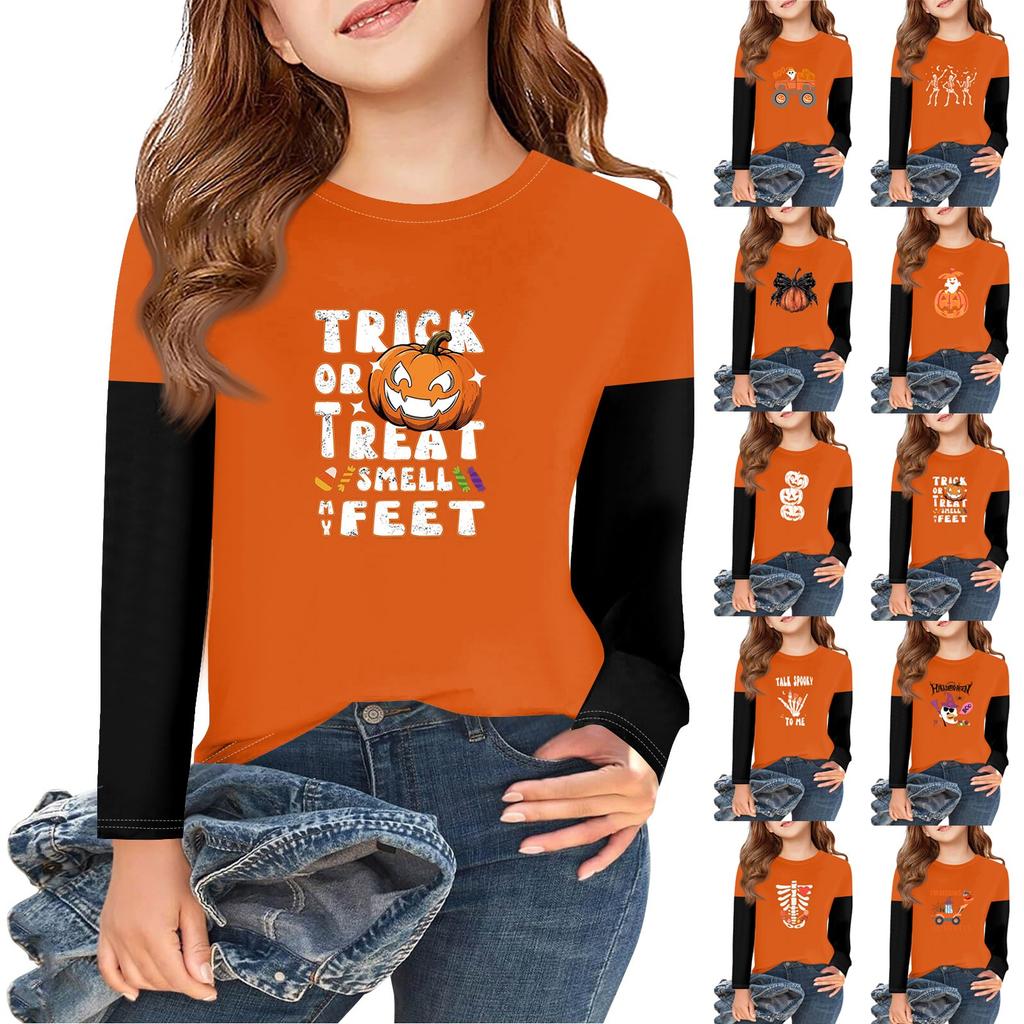 Girls Long Sleeve Halloween Day T Shirts Kids Fall Tops Crewneck Basic Tees 2-11Y