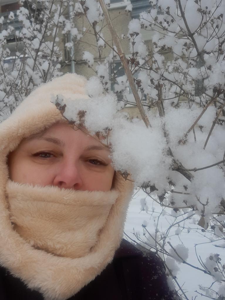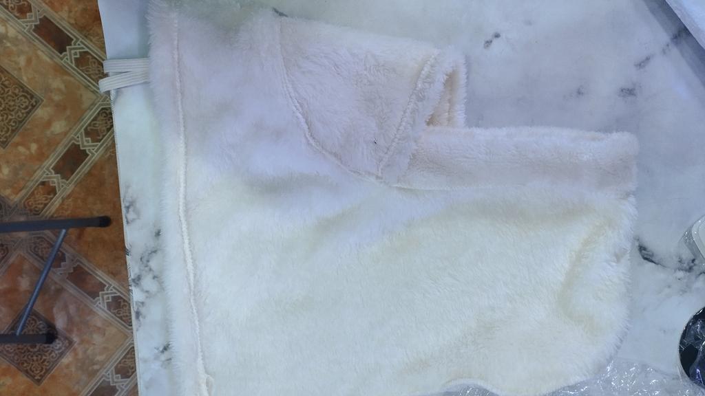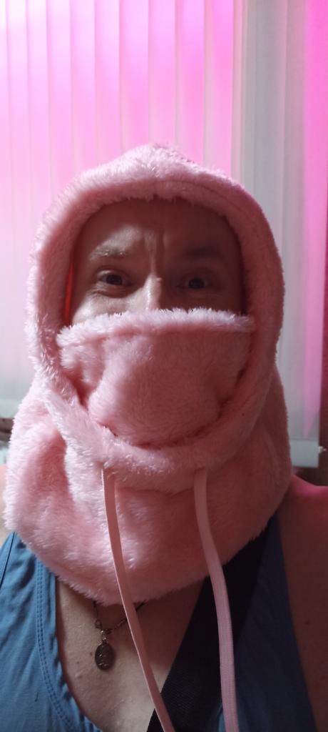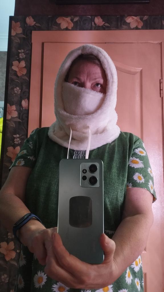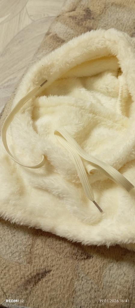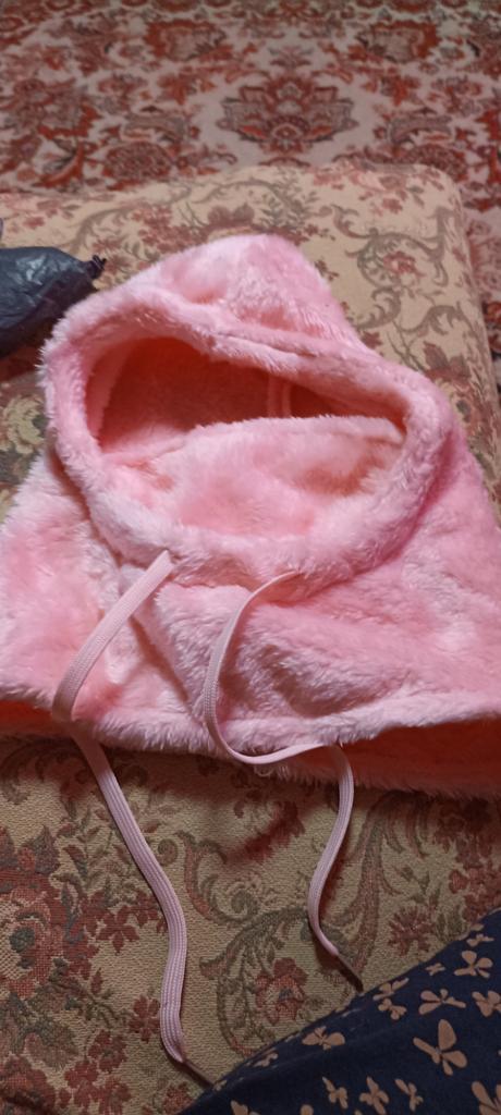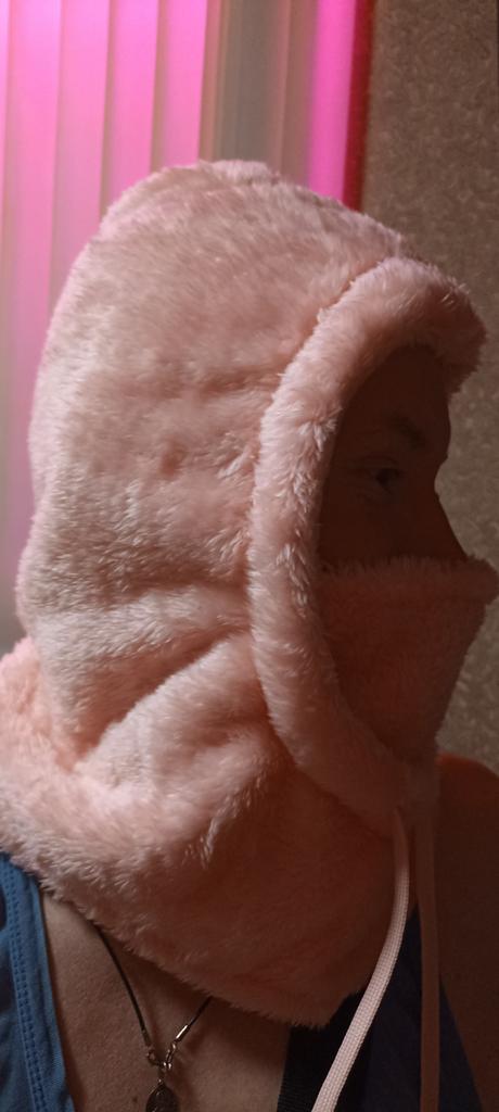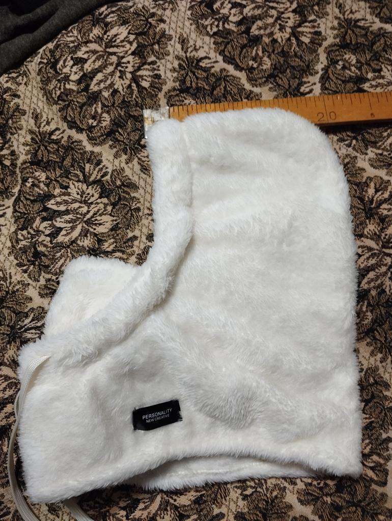 Ordered on October 26. Received in mid-January. Looks good with a bun or ponytail. Covers the face up to the eyes. Wore a round fur hat on top. Looks excellent and is very warm.