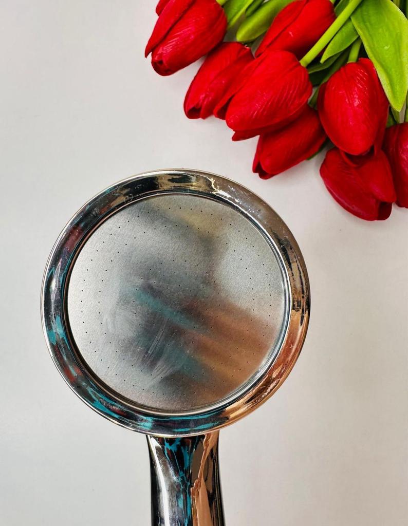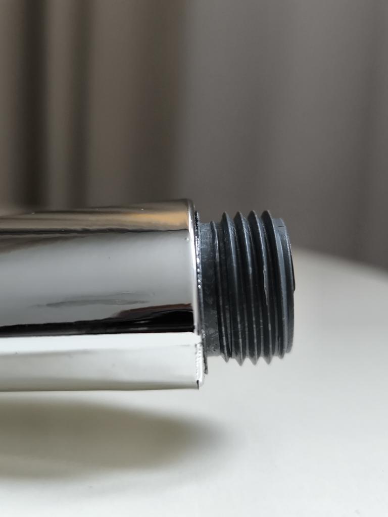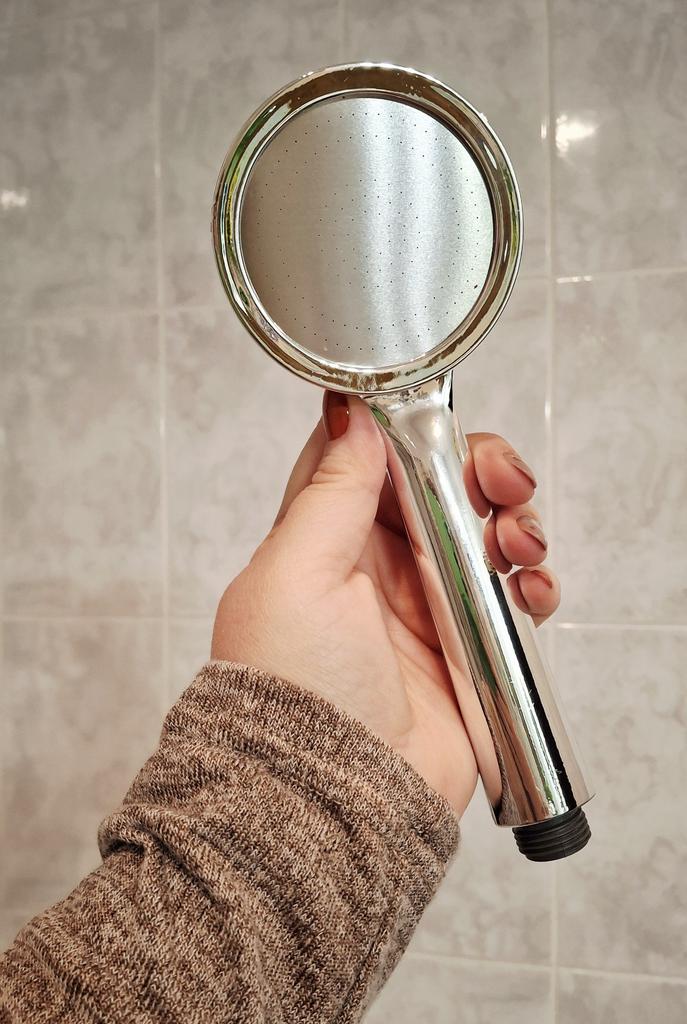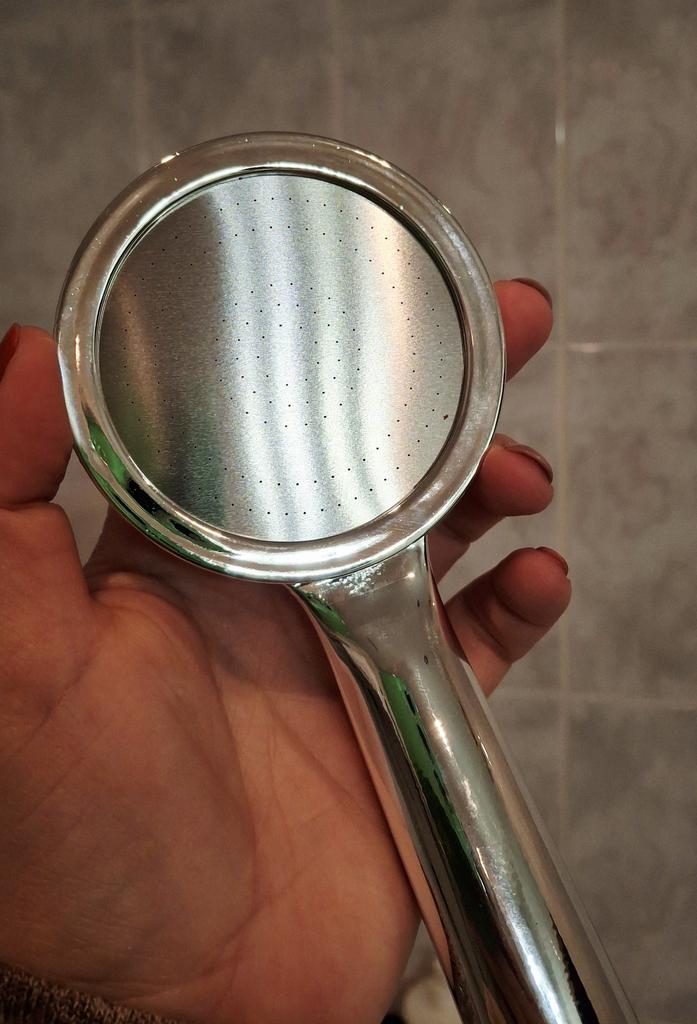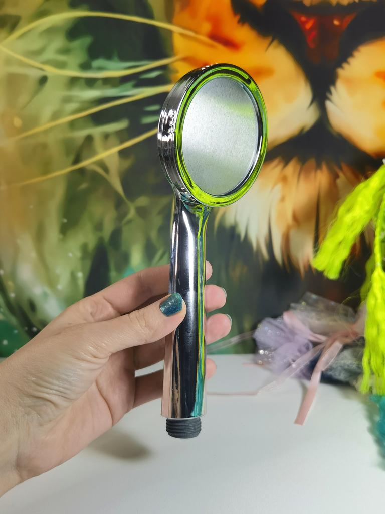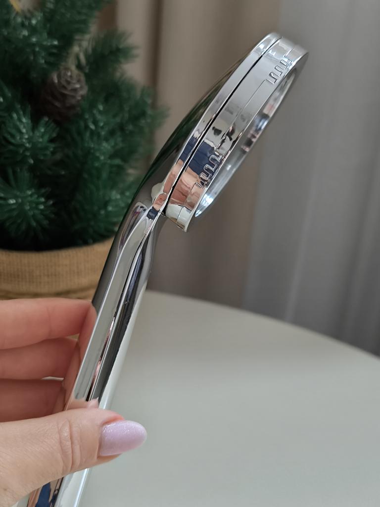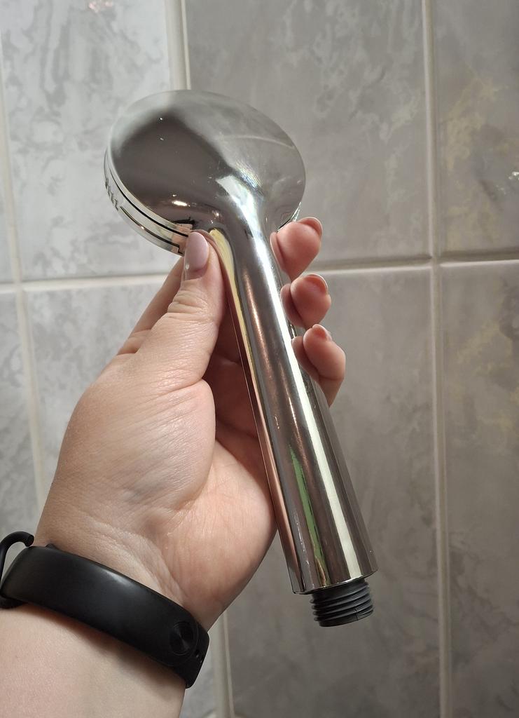 Shower head with nano spray Made of ABS plastic with a silver coating. The dimensions are very compact. Simple to install and requires no special tools. Fits standard-size shower hoses. Budget option. For its cost, it's a quite normal attachment. I recommend.