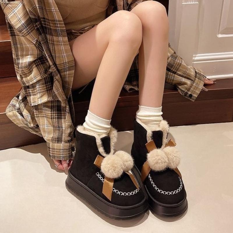 Fashion Winter Cute Bow Chunky Snow Boots for Women Round Toe Plush Woman Shoes Padded Y2k High Quality On Offer 2025 Novelty Footwear