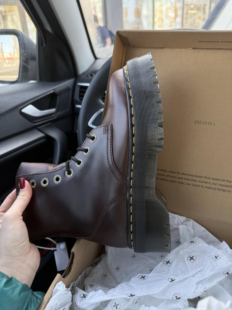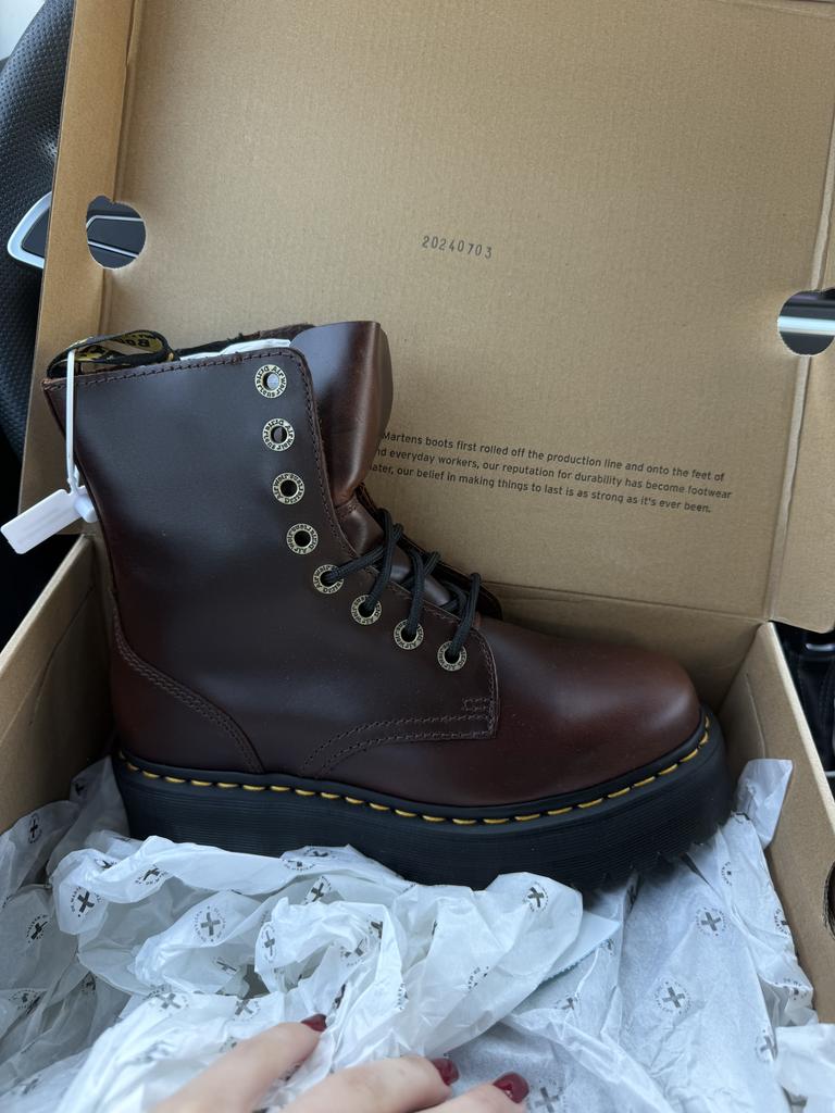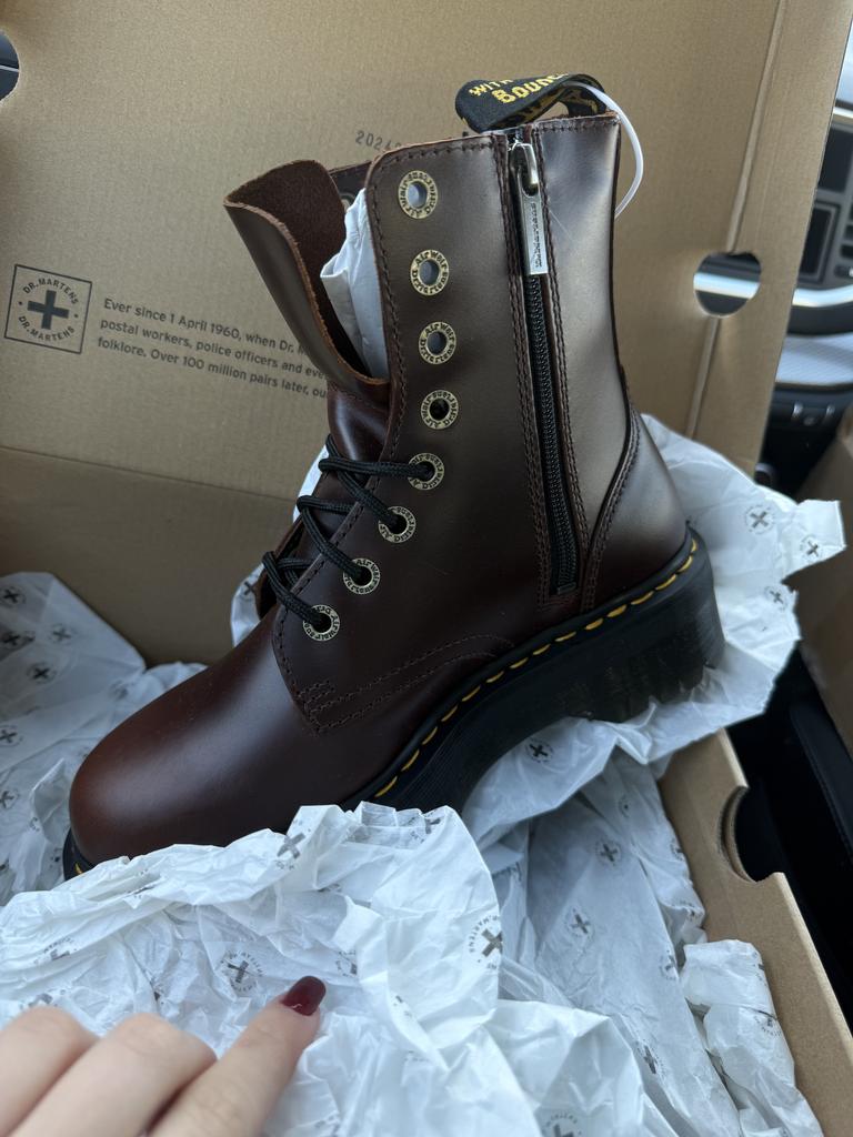Dr. Martens Jadon Series Leather Round Toe Lace-Up Flat Short Boots Women Boots Dark-Brown 31375201