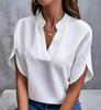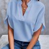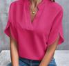 Elevate your summer style with this casual short-sleeved pullover shirt, designed for women seeking comfort and elegance. Crafted from high-quality polyester, it ensures a soft and breathable feel perfect for warm days. The solid color and V-neck design offer a versatile and timeless look, suitable for various occasions. With its relaxed fit and stylish simplicity, this shirt effortlessly combines comfort with chic, making it a must-have staple in your summer wardrobe.