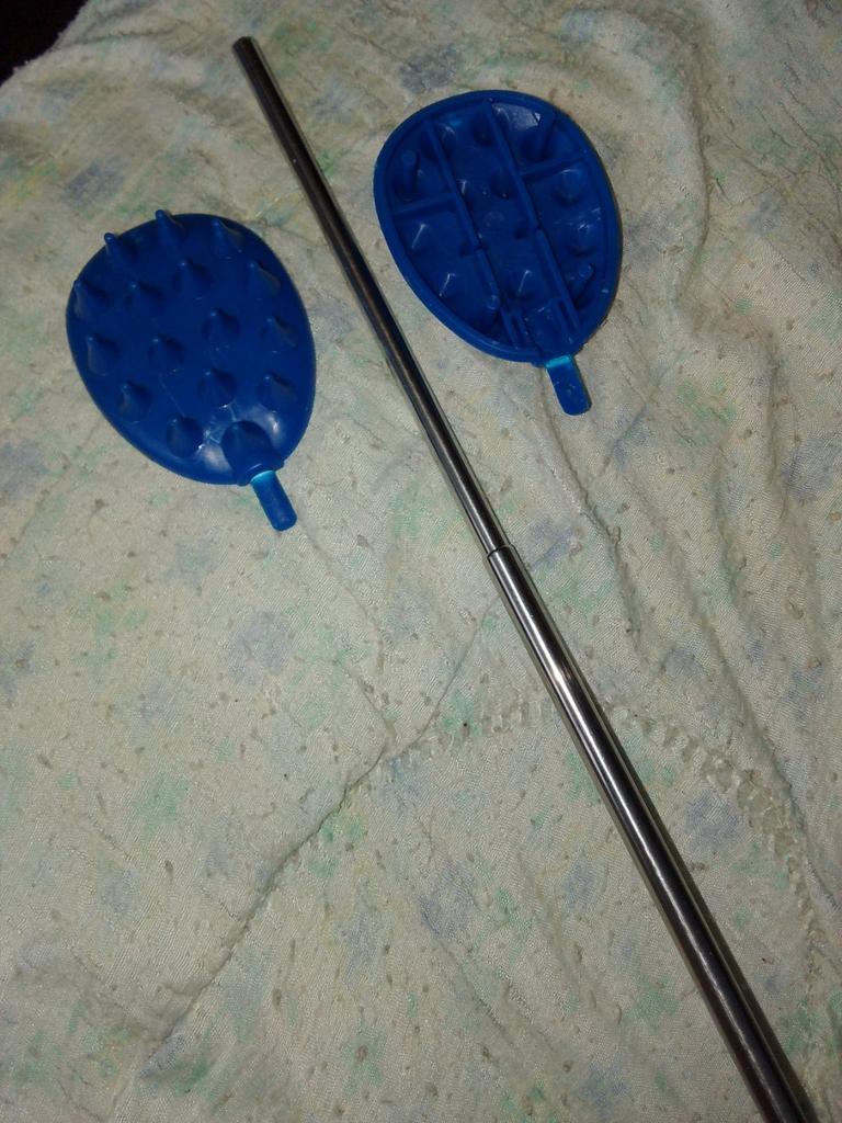 Unexpectedly cool grooming tool. One side is stiffer, the other side is softer. The handle extends to different lengths