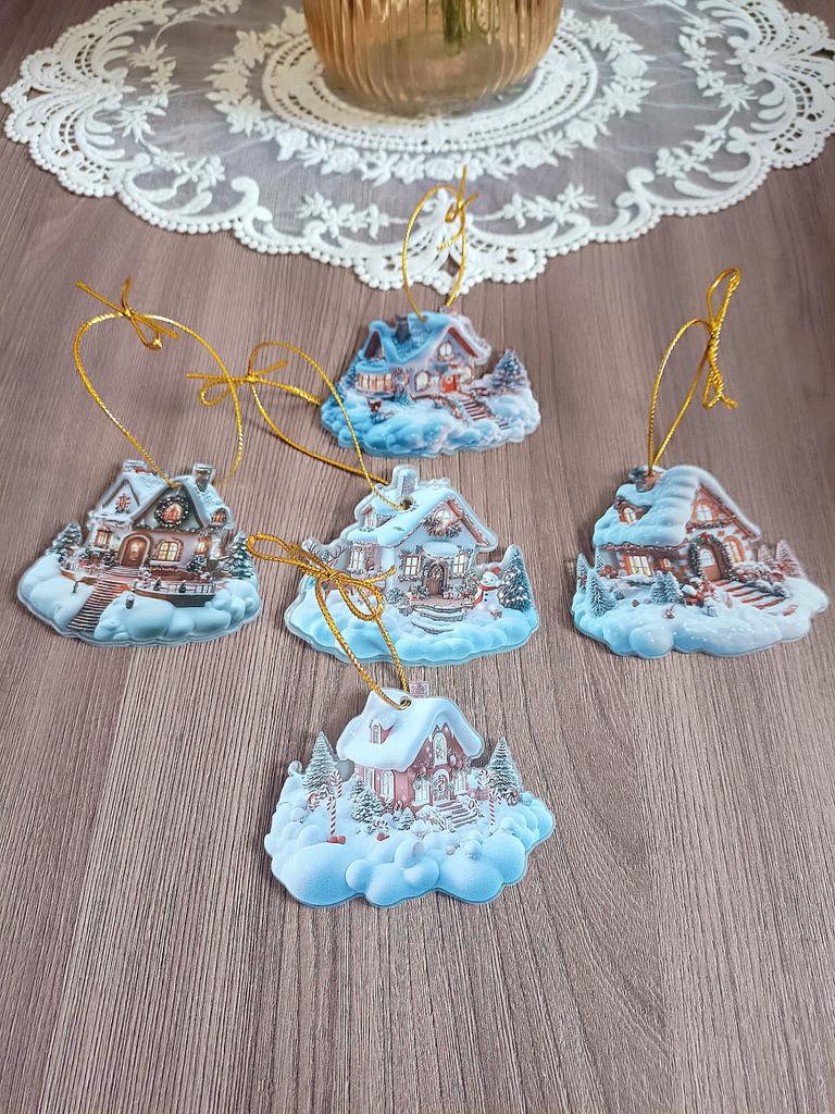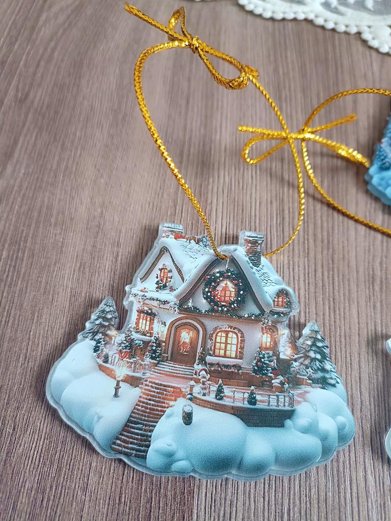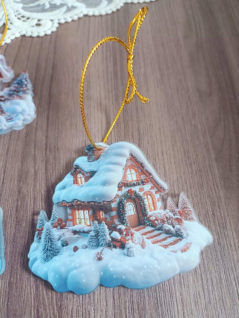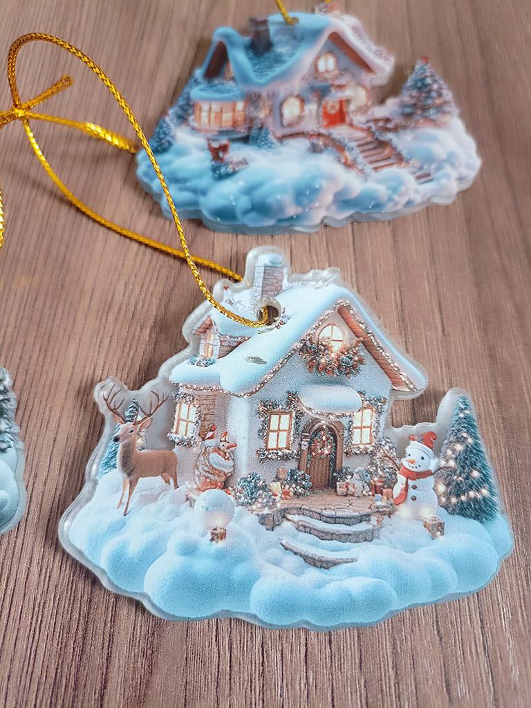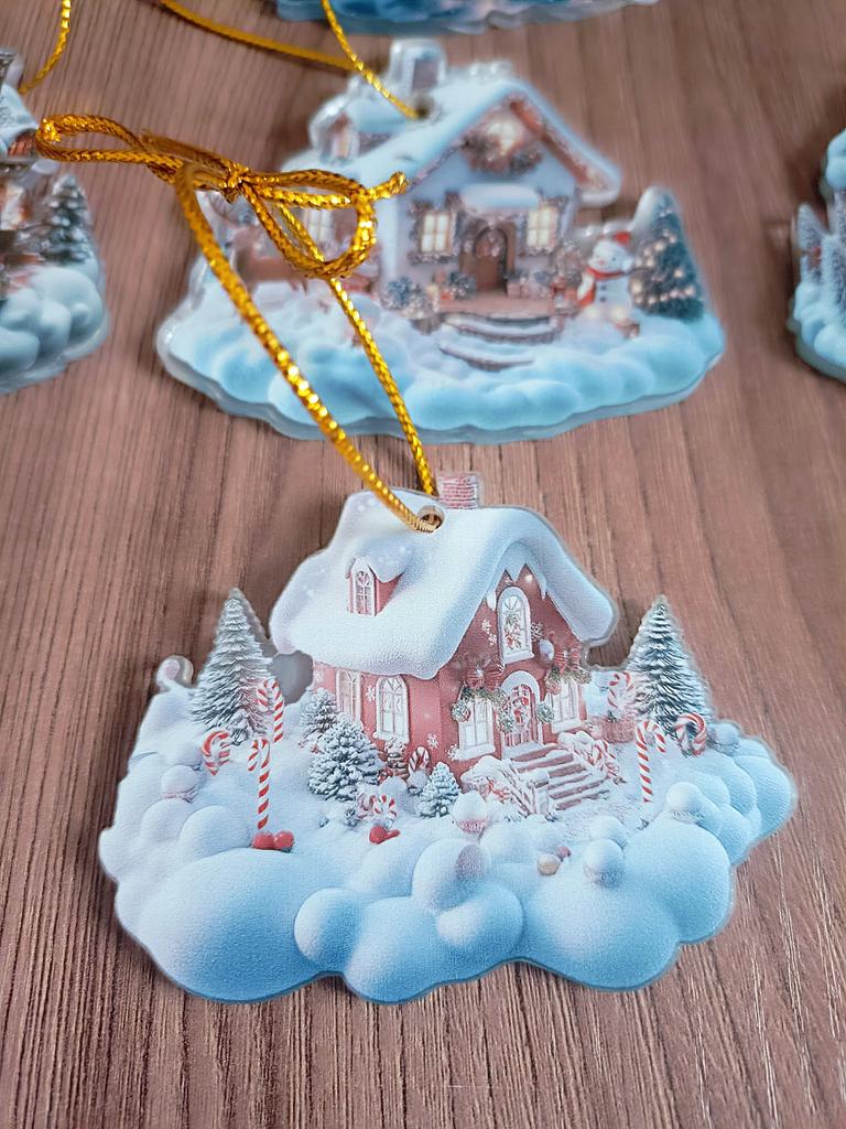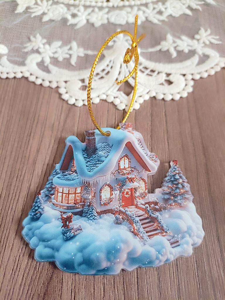 A cute acrylic pendant in the shape of a cozy winter house 🥰 I ordered my pendants a bit late. Well, at least I managed to get them for Chinese New Year 😁👍🎄 It's still very snowy here, so these decorative toys are relevant. High-quality print, I like it. PS: don't forget to remove the protective film.