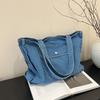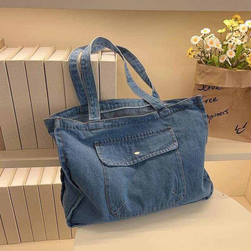 Simple Casual Literary and Artistic Style Versatile Solid Color Denim Bag Shoulder Underarm Bag Large Capacity Tote Bag