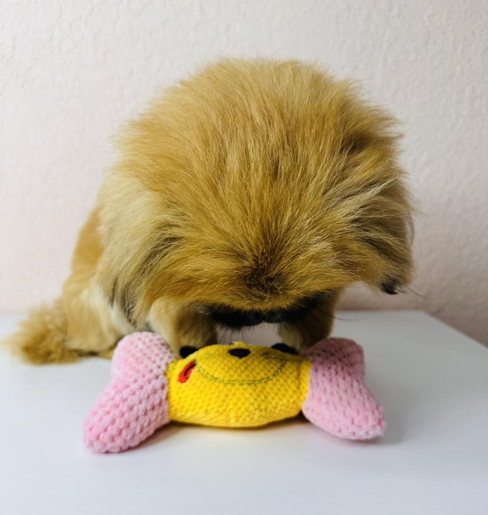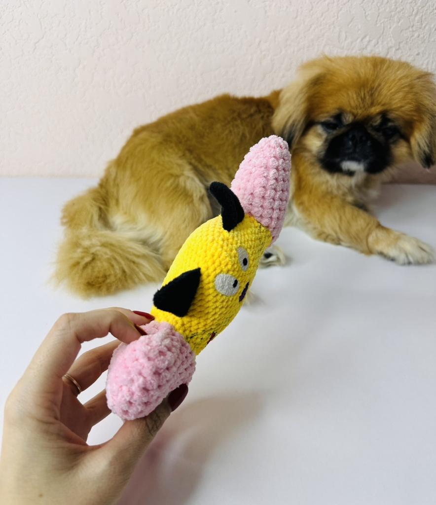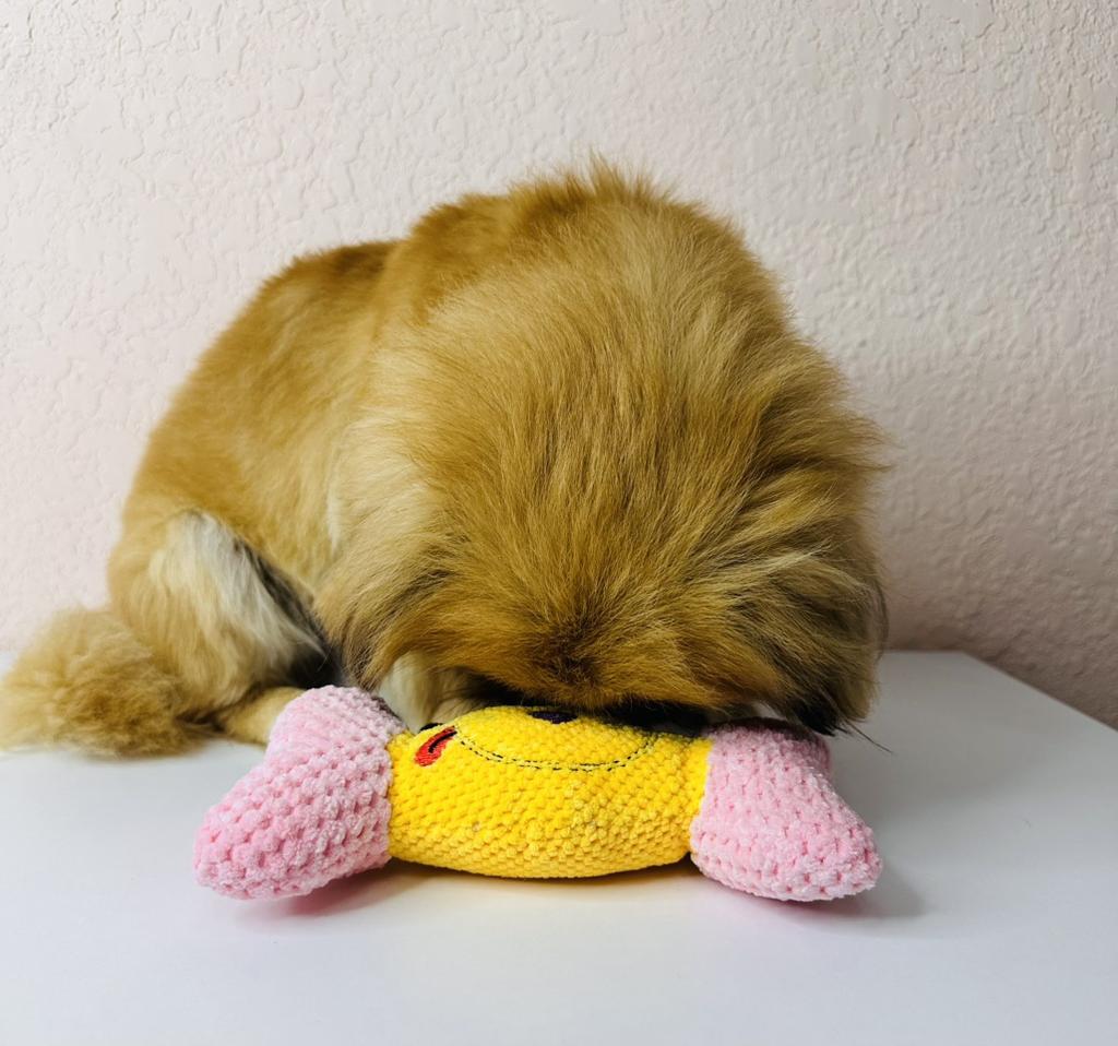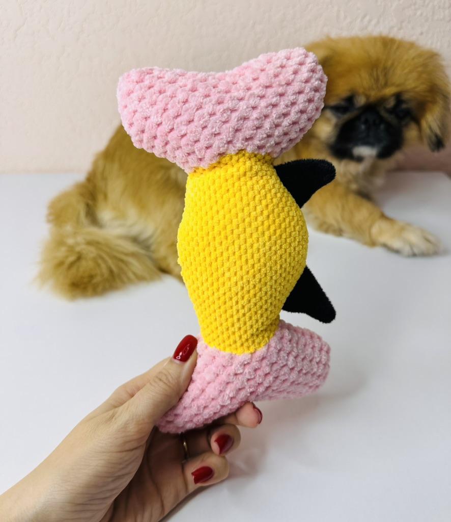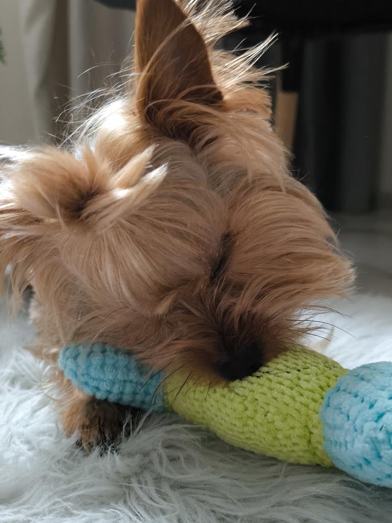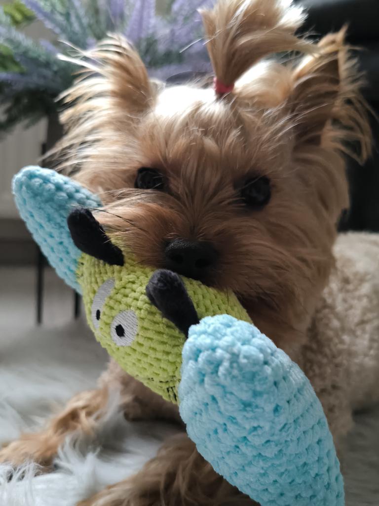Perfect toy for entertainment and teething! This toy is simply perfect! I bought it for my small dog and also for the cat – and both of them just don't stop playing with it. It's soft and pleasant to the touch, but durable enough to withstand chewing – which is rare to find. The material (corn wool) is surprisingly high quality – both safe, ecological, and doesn't wear out quickly. The big plus for me is the sounds – the toy makes noises that really grab the animals' attention and keep them occupied for a long time.. Excellent also for puppies in the teething process – it soothes them and doesn't cause damage. A simple, cute, and really useful toy. Highly recommend!