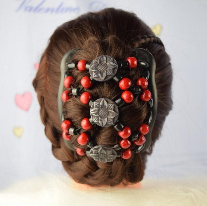 Sunflower Style Wooden Bead Hair Comb - Double Row, Versatile Handmade Hair Accessory.