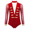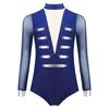 Girls Dance Leotard Sheer Mesh Long Sleeves Mock Neck Keyhole Back Metallic Stripes Buttons Bodysuit Costume
