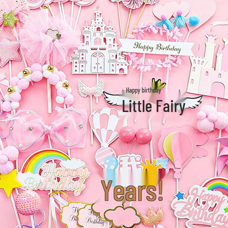 Pink Themed Cake Decor: Heart & Cloud Balloons with Insert Cards for Birthday Parties