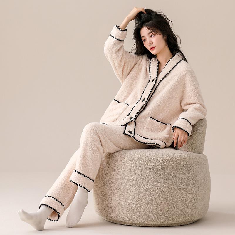 Coral Fleece Pajamas Women'S Winter 2024 Thickened Fleece Autumn And Winter Casual Flannel Loungewear Warm Suit
