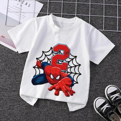 Marvel Spider Man T-shirt 1-9 Birthday Party Boys Cool Short Sleeve T-shirt Summer Children's Fashion Top Cotton Clothing