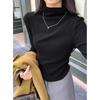 Semi-turtleneck Card Waist Pleated Top Women's Spring Double-sided Abraded Warm Inner Long-sleeved T-shirt Bottoming Shirt