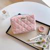 Korean-Style Plaid Bow Makeup and Skincare Bag: Large Capacity, Portable, Simple Design for Women