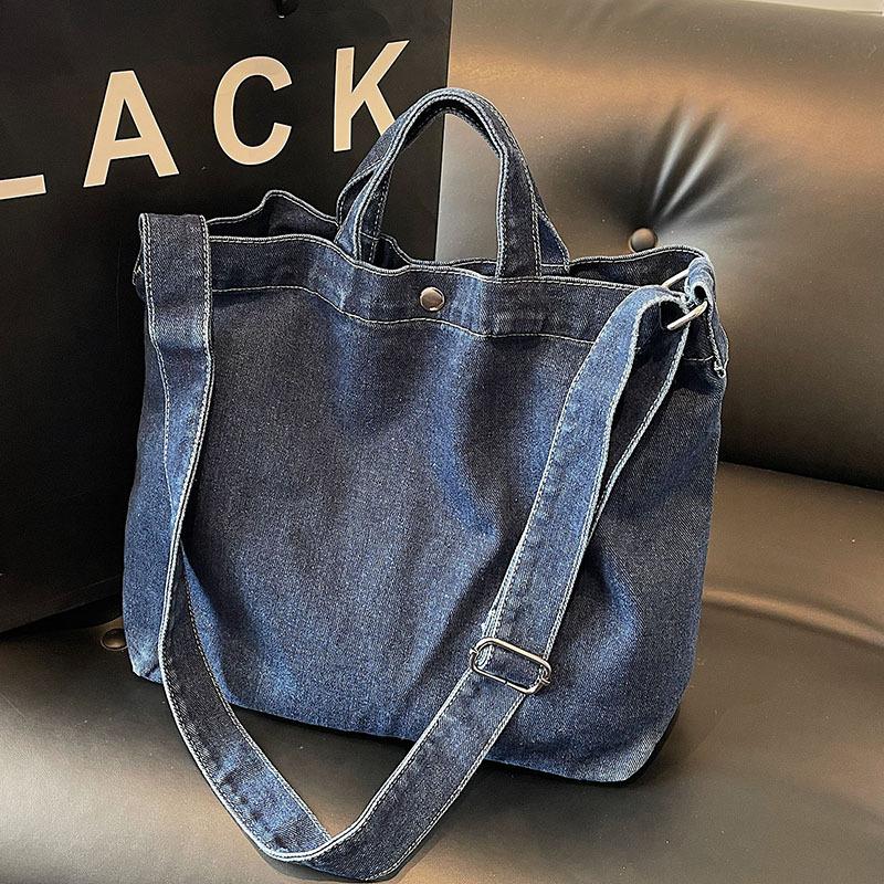 Large Capacity Tote Bag Women's New Denim Canvas Bag Retro Casual Crossbody Bag College Student Literary Shoulder Bag