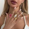 European & American Pearl Hollow Irregular Ring with Rhinestones & Flower Knuckle Design