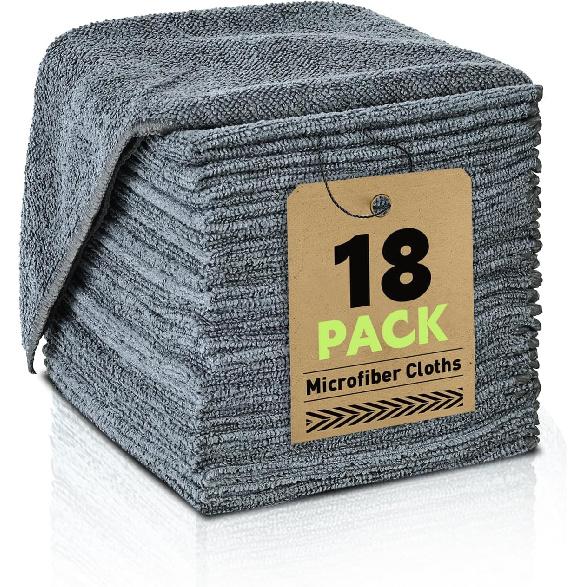 Microfiber Cleaning Cloths Bulk-18 Pack, Gray Microfiber Towels For Cars, Ultra Absorbent Microfiber Towel Weave Grime & Liquid For Streak-Free