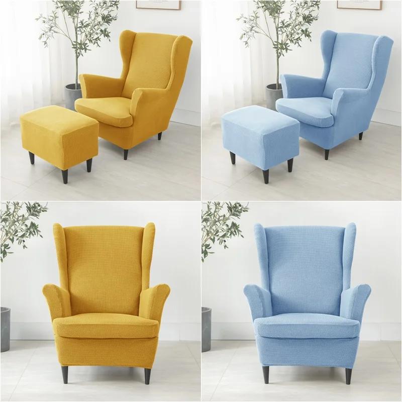 Solid Color Wing Chair Cover Stretch Spandex Armchair Covers Elastic Sofa Slipcovers With Seat Cushion Cover Footstool Covers