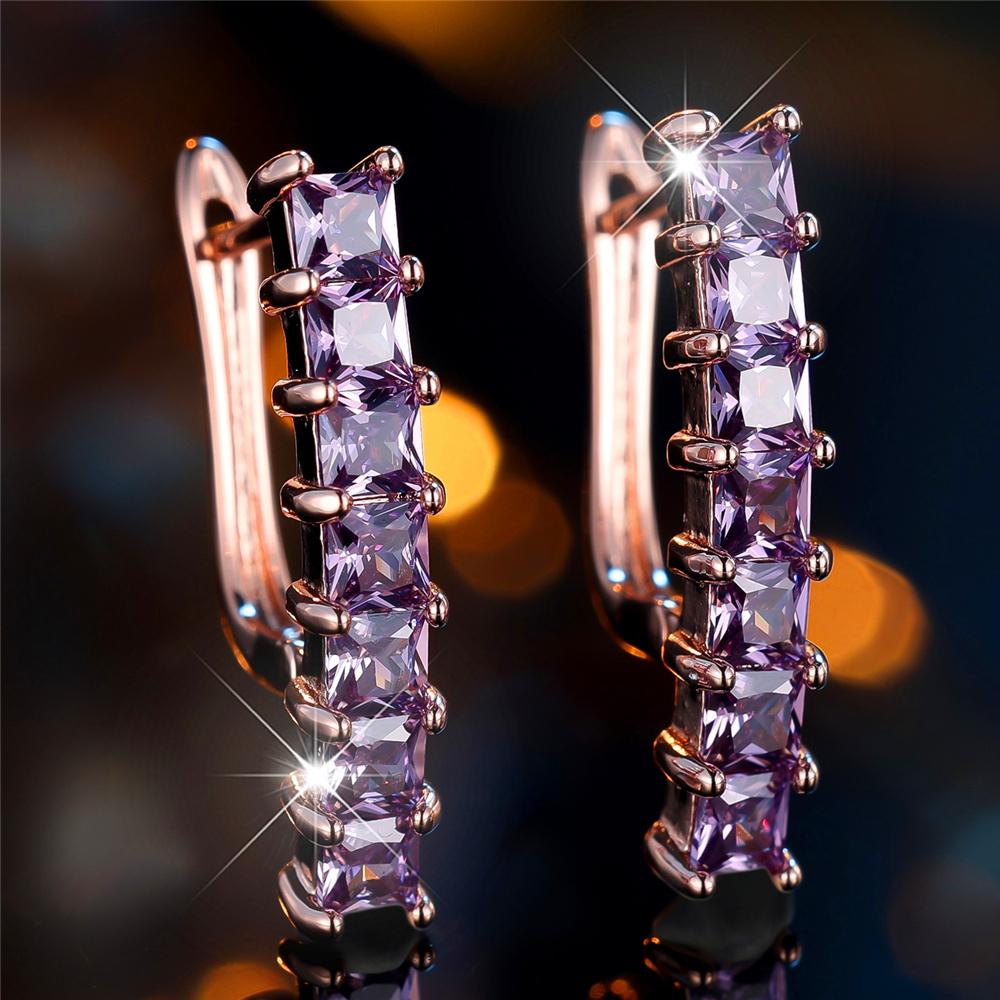 Luxury Female Purple Zircon Stone Hoop Earrings Fashion Rose Gold Color Wedding For Women