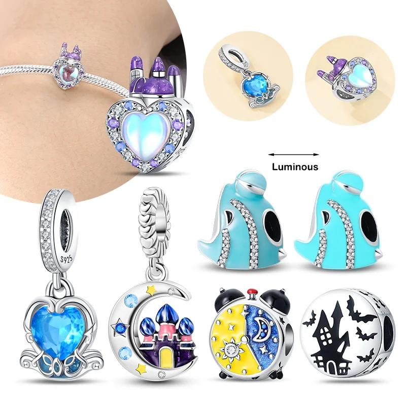 Copper Colors Castle Fairy Tale Charms Blue Crytsal Luminous Romantic Bead Fit Original Bracelet Diy Fine Jewelry Gift For Women