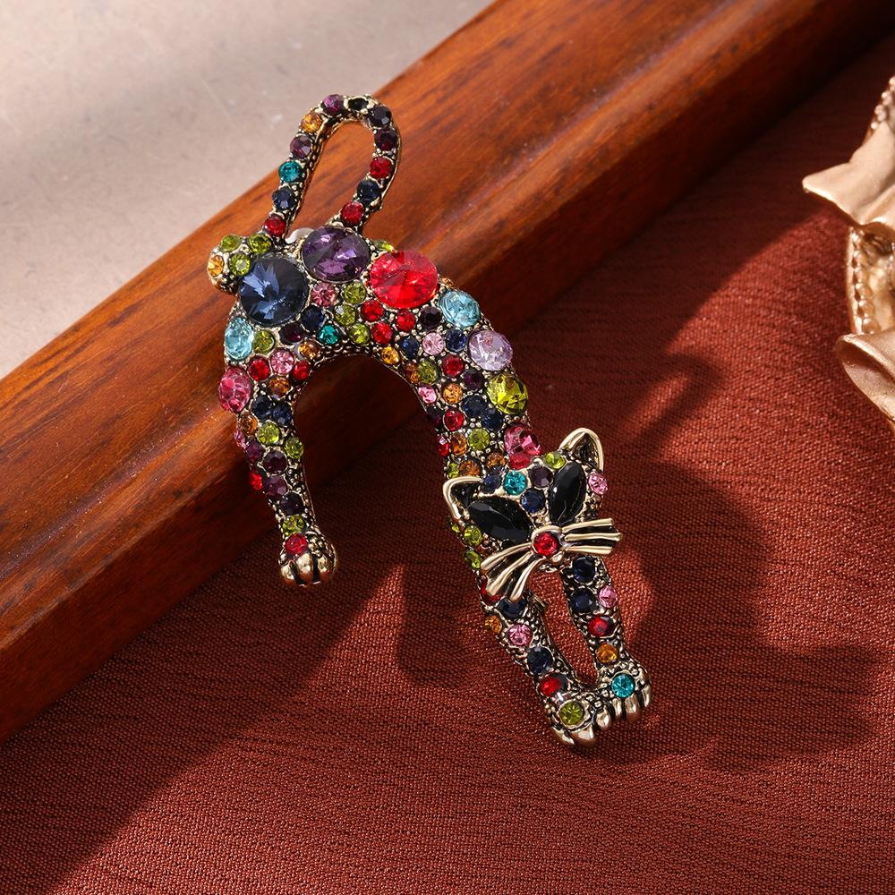 Diamond Cat Brooch, High-end Sense, Elegant and Gorgeous Style Animal, Lazy Cat Pin, Female Brooch.